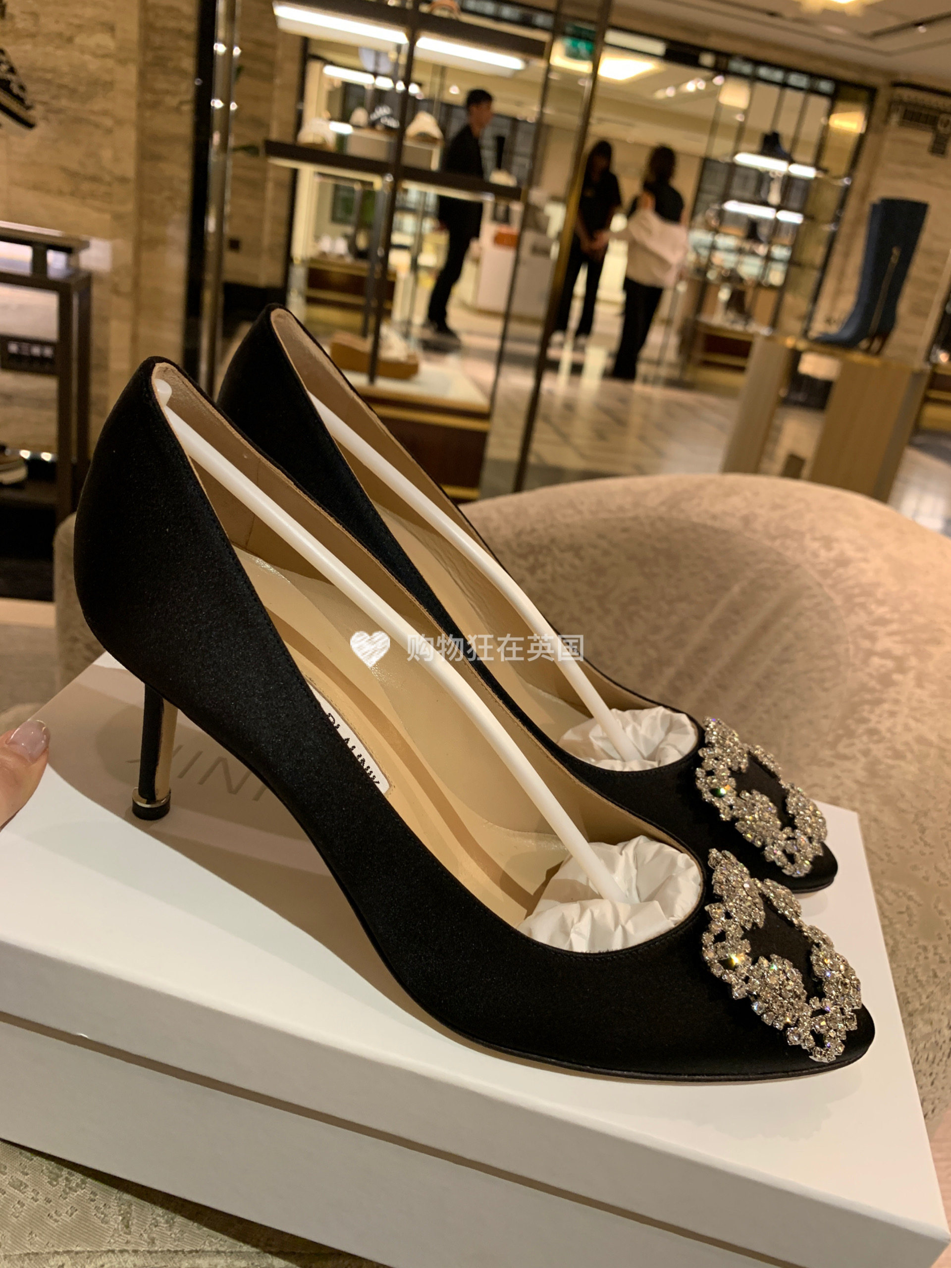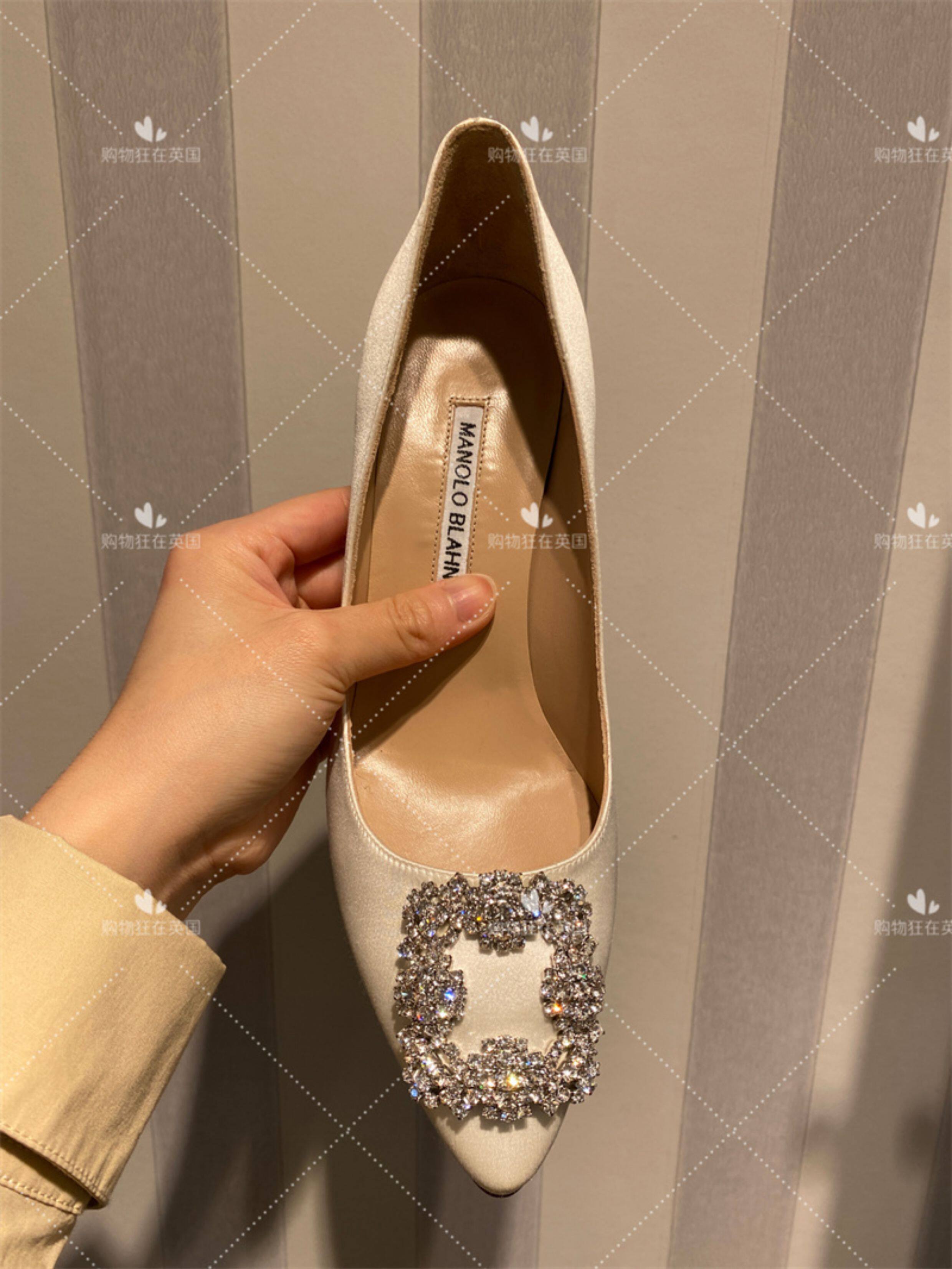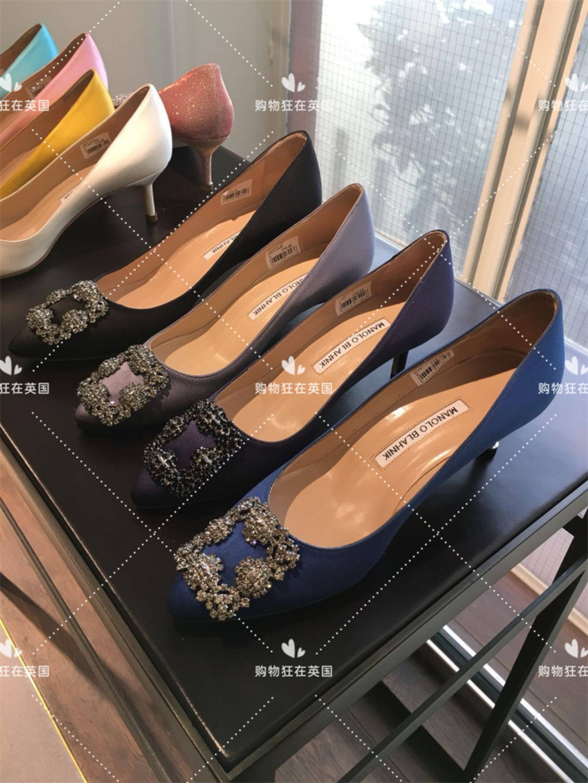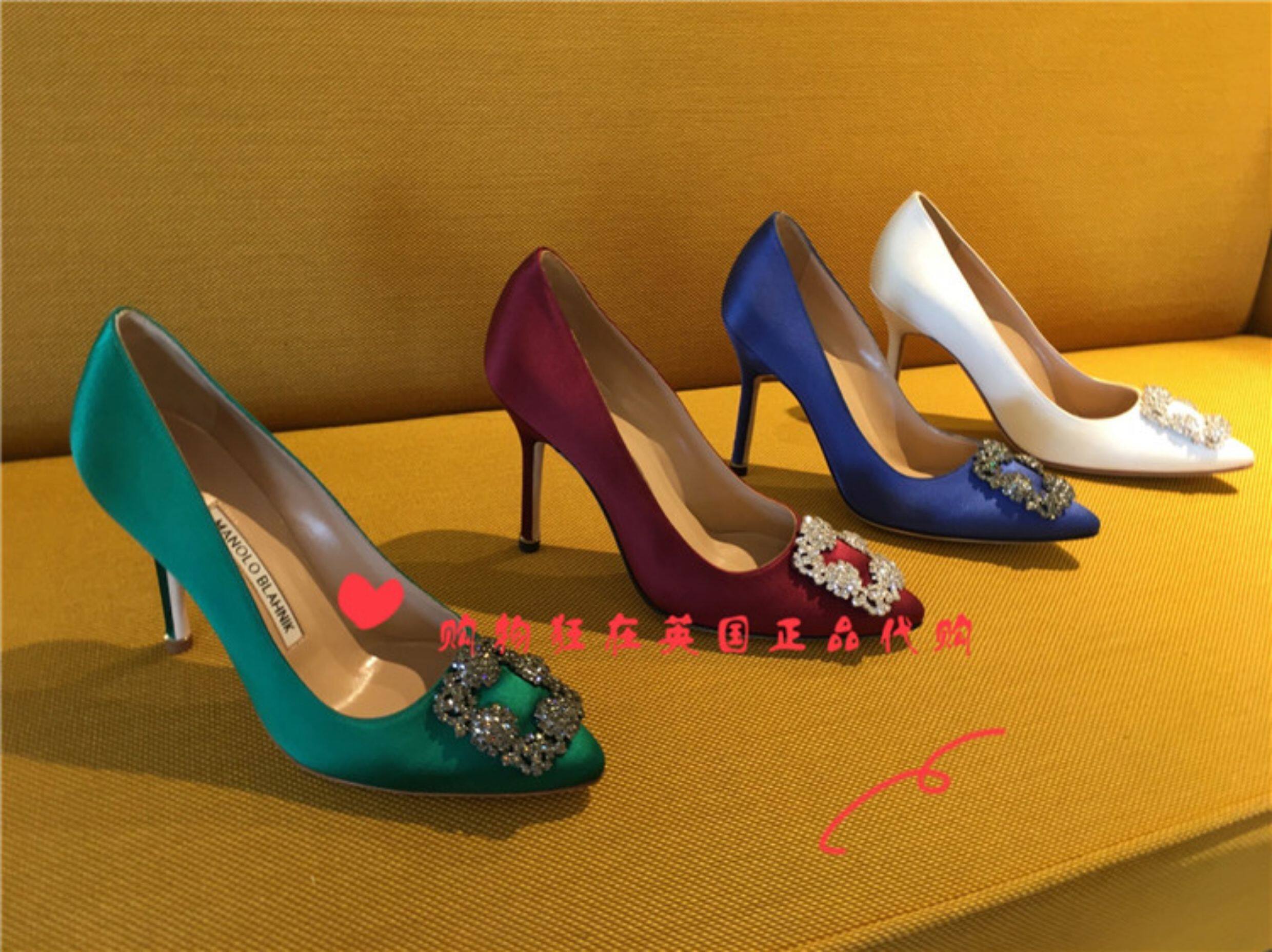 Маноло Бланик MB, британский агент по закупкам женских атласных туфель на шпильке с мелкой ромбовидной пряжкой, 7 см, XH