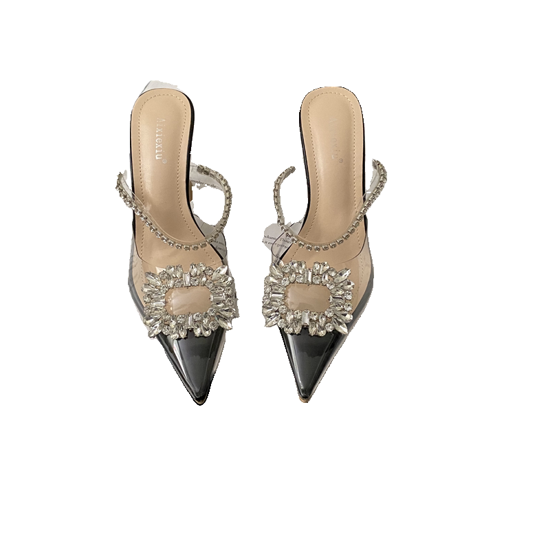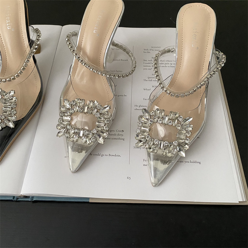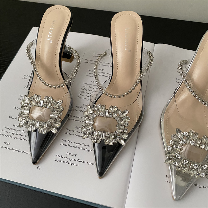 Женские полутапочки Baotou, летняя верхняя одежда, сандалии с пряжками со стразами, прозрачные кристальные туфли на высоком каблуке, женская сексуальная модная обувь на шпильке