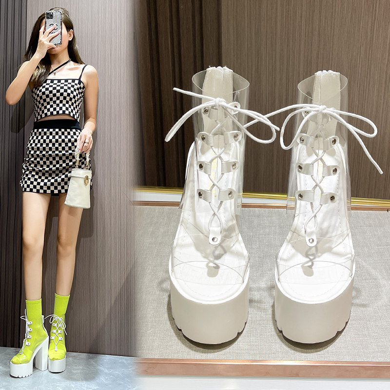 Корейская версия белой толстой каблуки 16 см Гого Ультра -Высокая пятка водонепроницаем