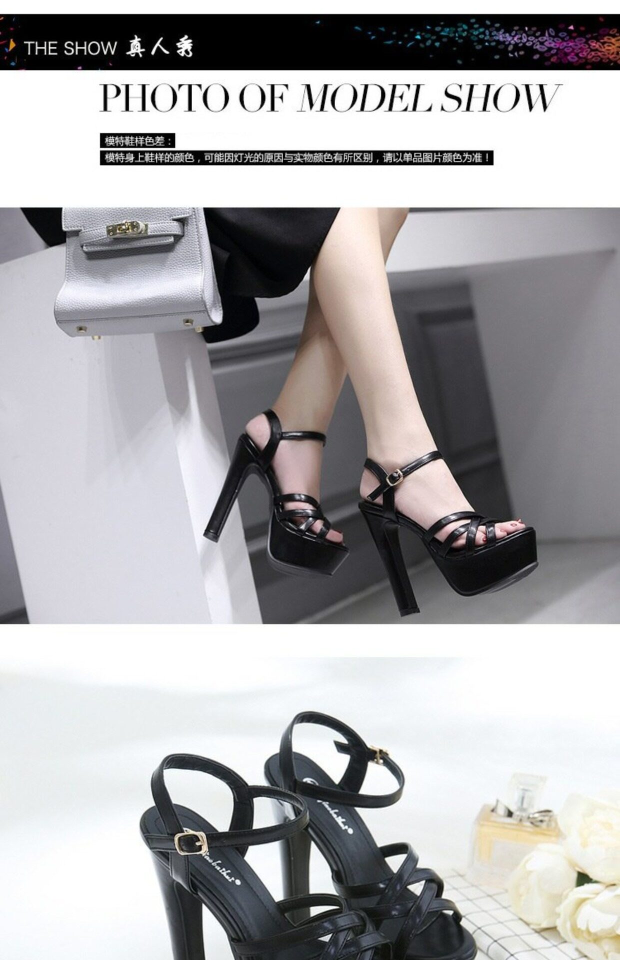 Сексуальные женские туфли на очень высоком каблуке 15 см для ночного клуба на толстой подошве, модельные босоножки на толстом каблуке для подиумных танцев на пилоне