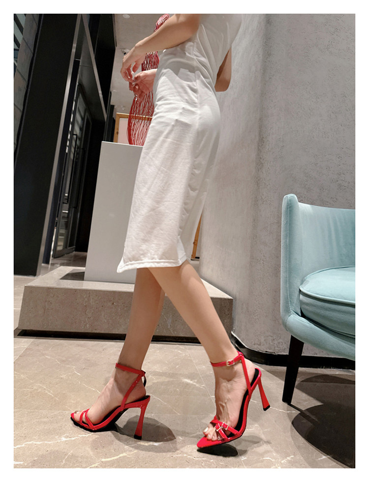Летняя пряжка с ремешком, босоножки, красные туфли на высоком каблуке, европейский стиль, 2025 года, тонкий ремешок