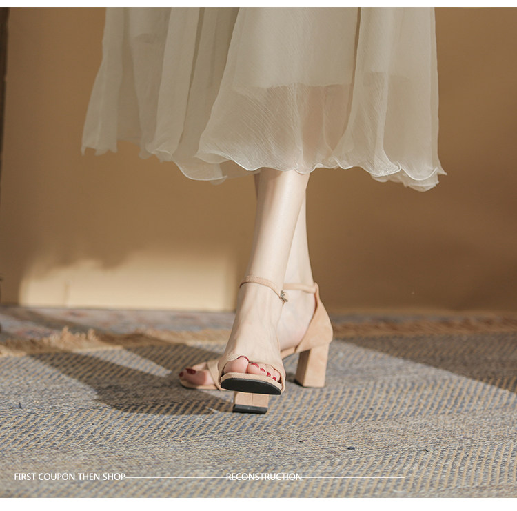 Летние сетчатые босоножки с ремешком, универсальные туфли на высоком каблуке, Гонконг, популярно в интернете, подходят к юбкам