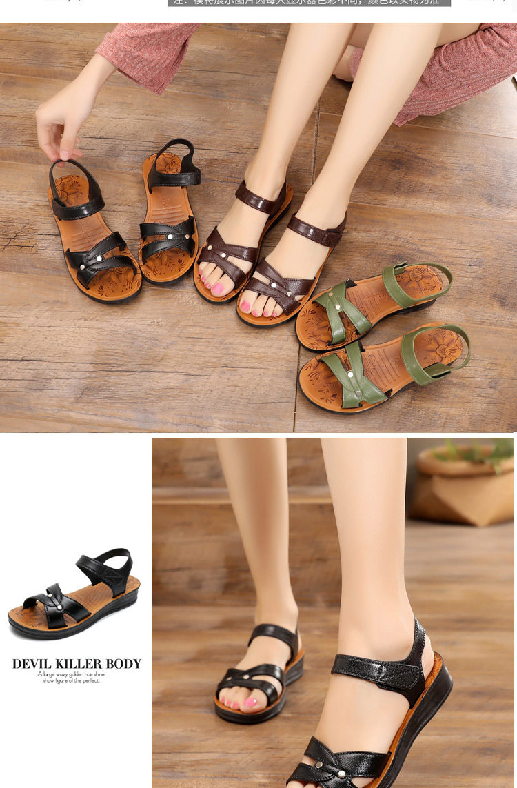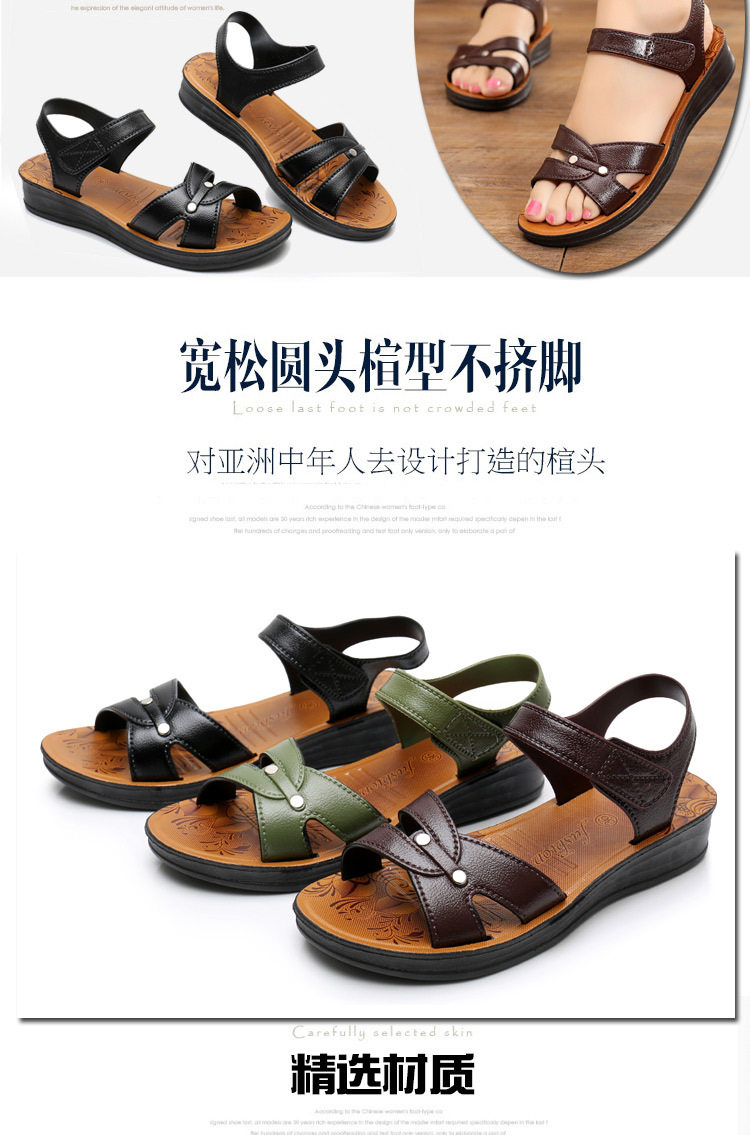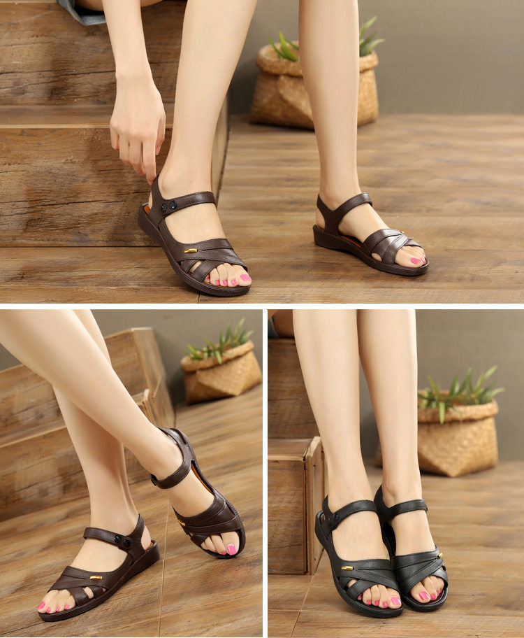 Лето 2025, новая женская обувь среднего возраста на мягкой подошве и плоской подошве для пожилых людей среднего и пожилого возраста, нескользящие сандалии для бабушек, сандалии для мамы