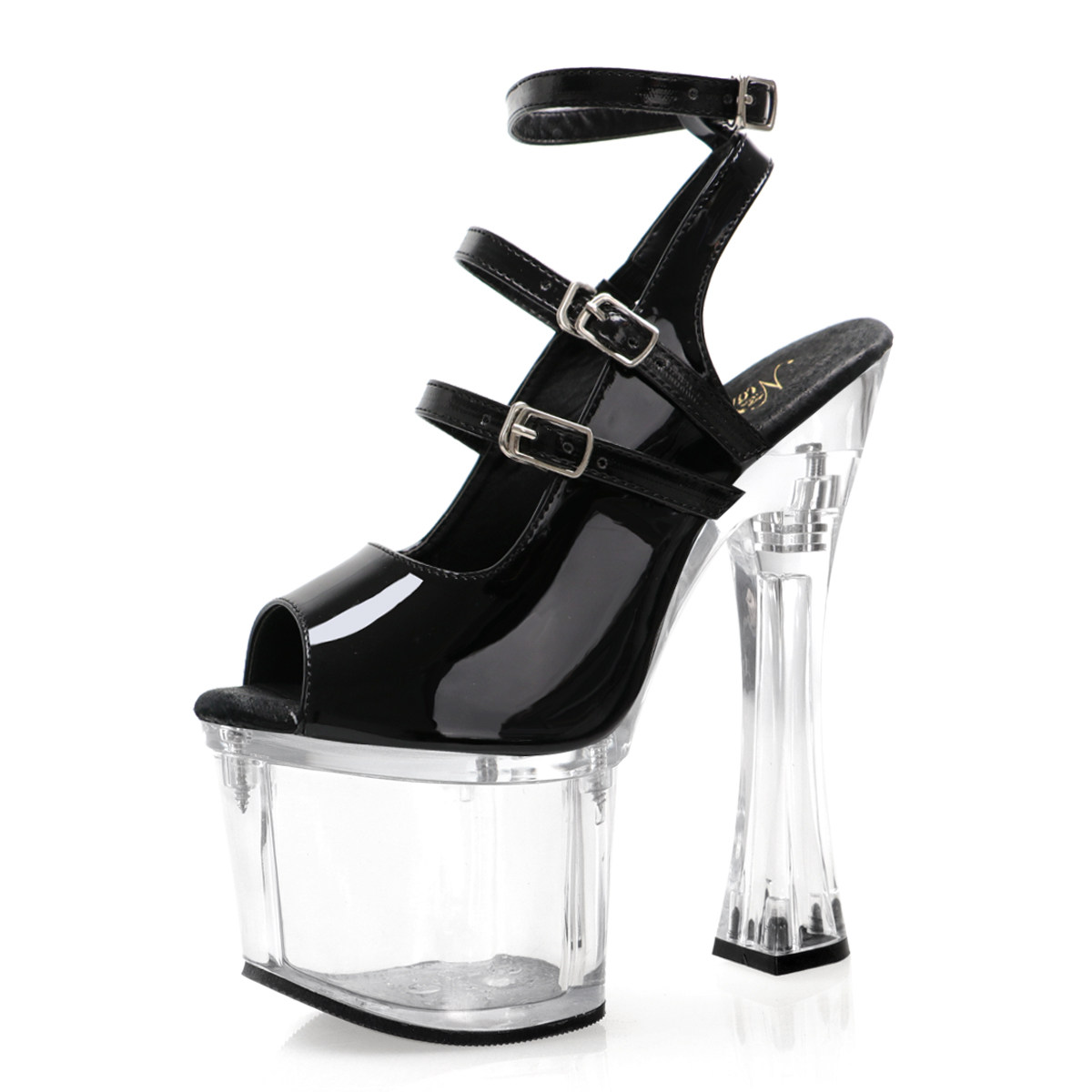 Сексуальные сандалии на очень высоком каблуке 20 см с пряжкой ремня для ночного клуба, модели с рыбьим ртом, подиумные сандалии 17 см, высокие каблуки для танцев на шесте, толстая подошва