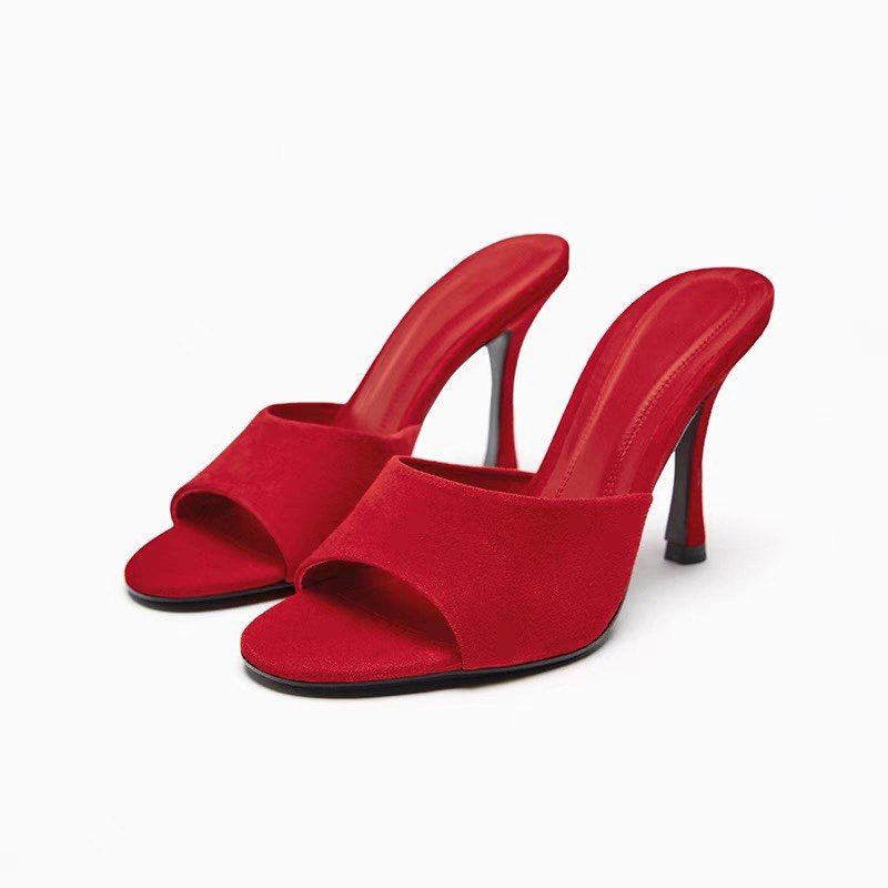 ZAR2023 Новая красная красная -словесная бархатная женская туфли Секси.