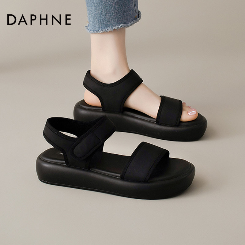 Летние спортивные сандалии, черная пляжная обувь для отдыха на платформе, изысканный стиль, мягкая подошва