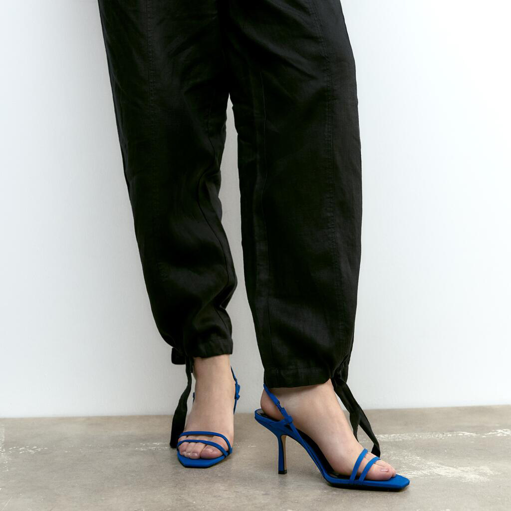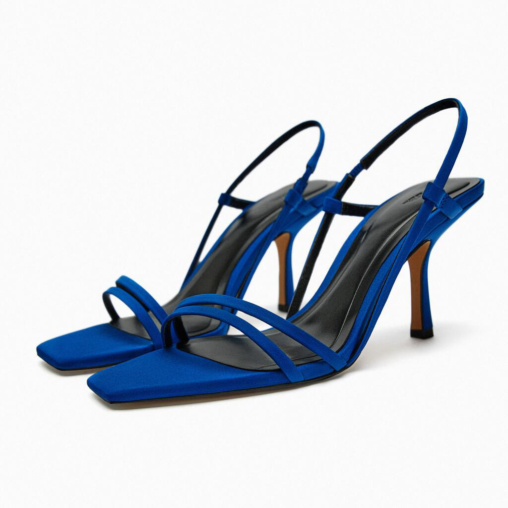 Zara, летние синие босоножки, 2023, французский стиль, тонкий ремешок