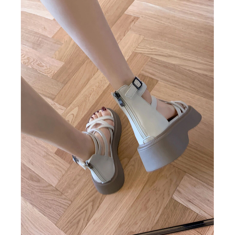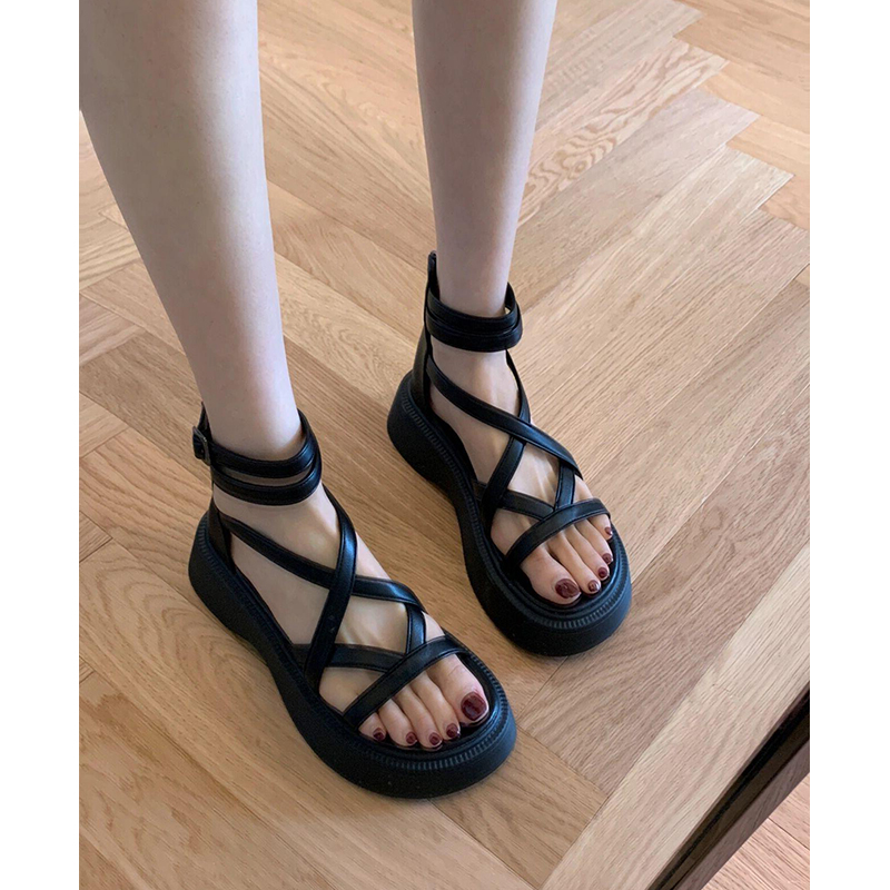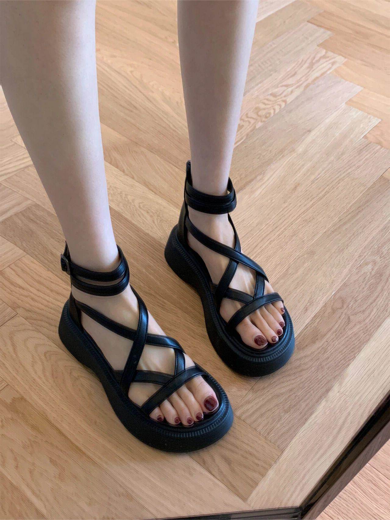 Черные высокие летние сандалии, обувь на платформе, плетеные туфли, ремень с молнией, сапоги, тонкий ремешок