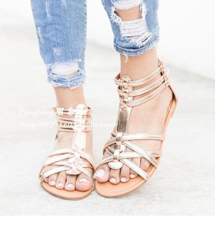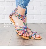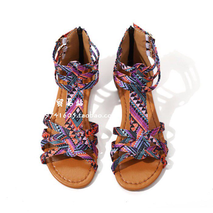 Летние плоские сандалии женщины Boho Beach Shoes Open Toe Plat Sandals