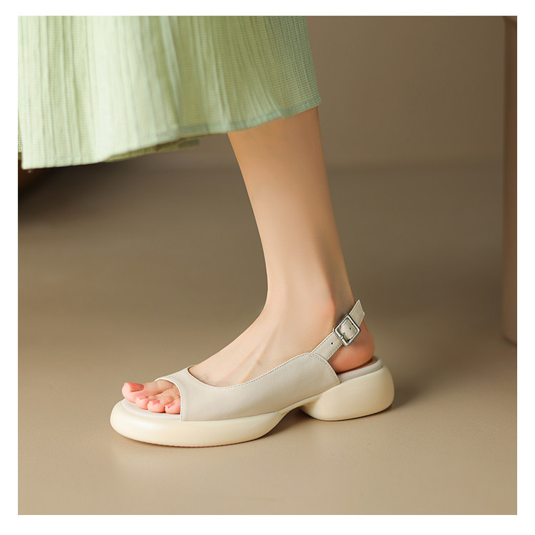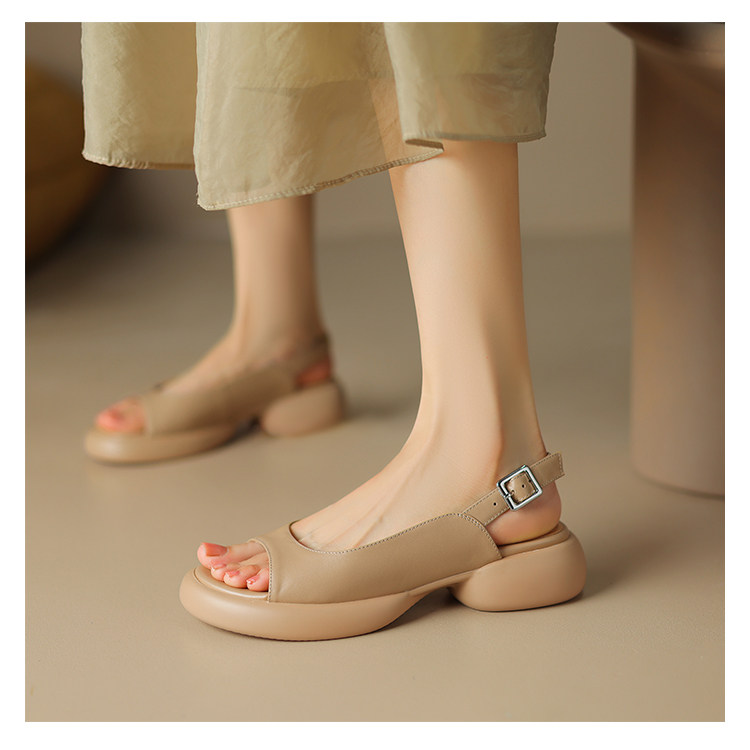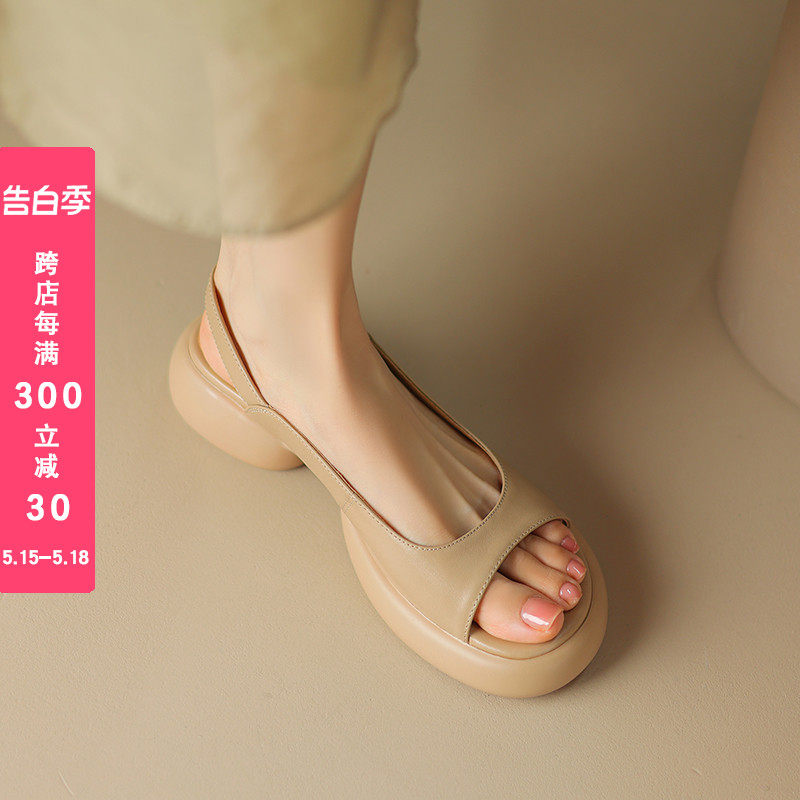 Не -экстравагантные Feichi хорошо смотрятся ~ кожаная круглая голова густое дно открыто -te -toe САМА