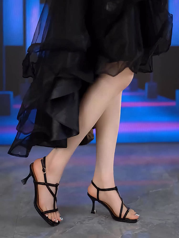 Летняя модная обувь на высоком каблуке, универсальные сандалии, французский стиль, тонкий ремешок