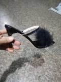 Мао Мао Хай -Хи -команда женская обувь мех женские женские сандалии на каблуках пляжные обувь