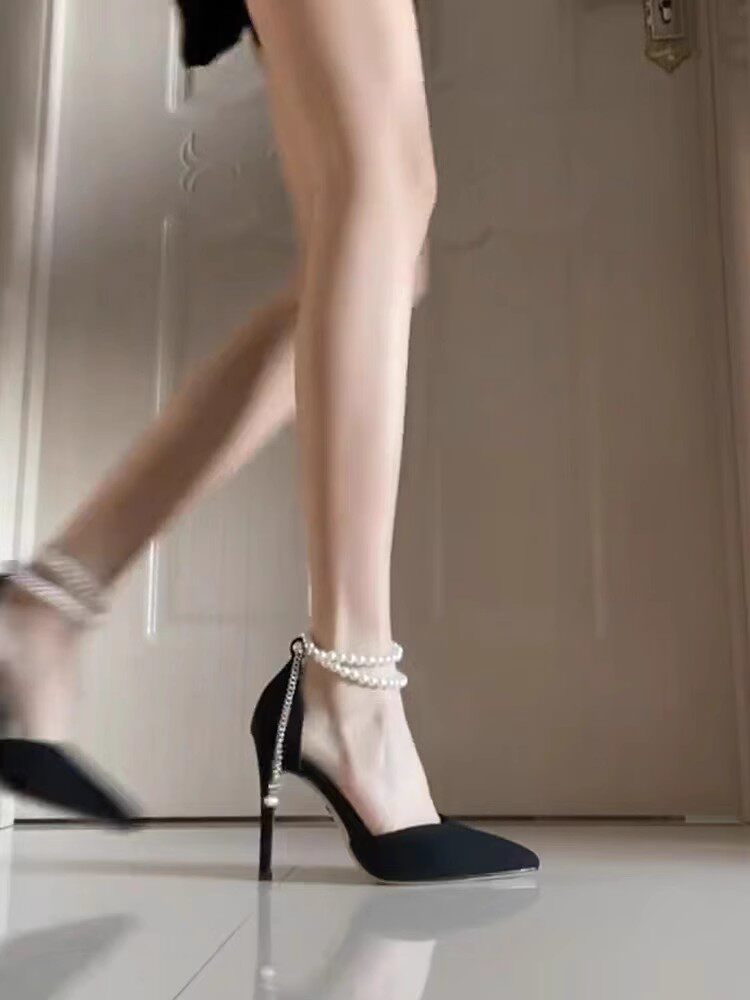 Летние туфли с заостренным носом на высоком каблуке, сандалии из жемчуга, обувь, по фигуре