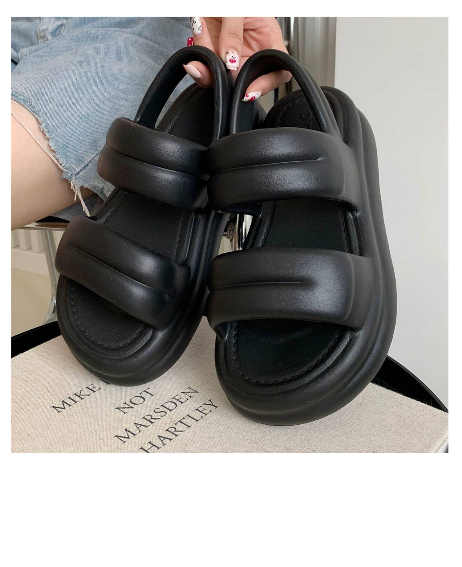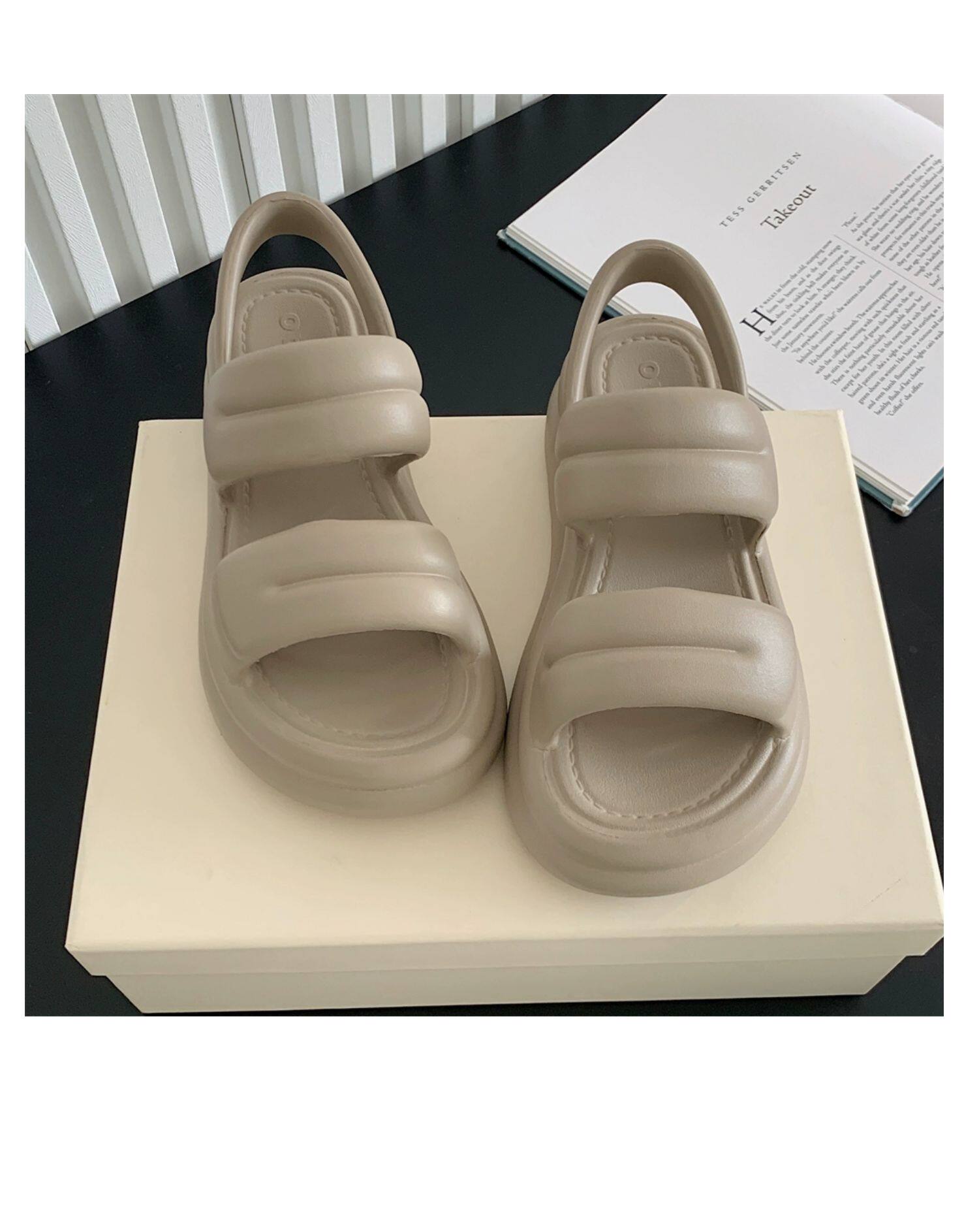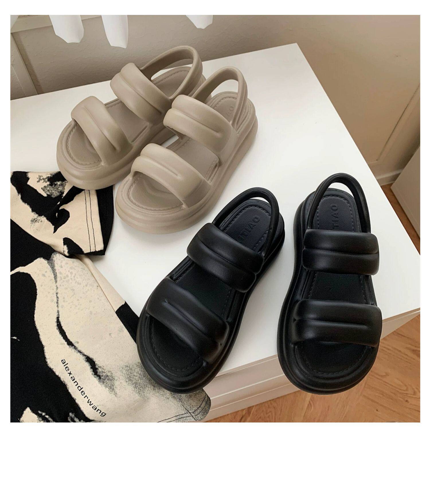 细细条 Модные летние босоножки, пляжная обувь, в корейском стиле, популярно в интернете, простой и элегантный дизайн, двойной ремешок