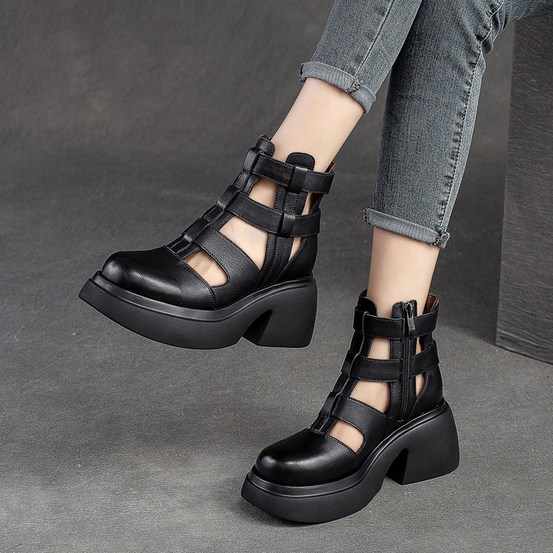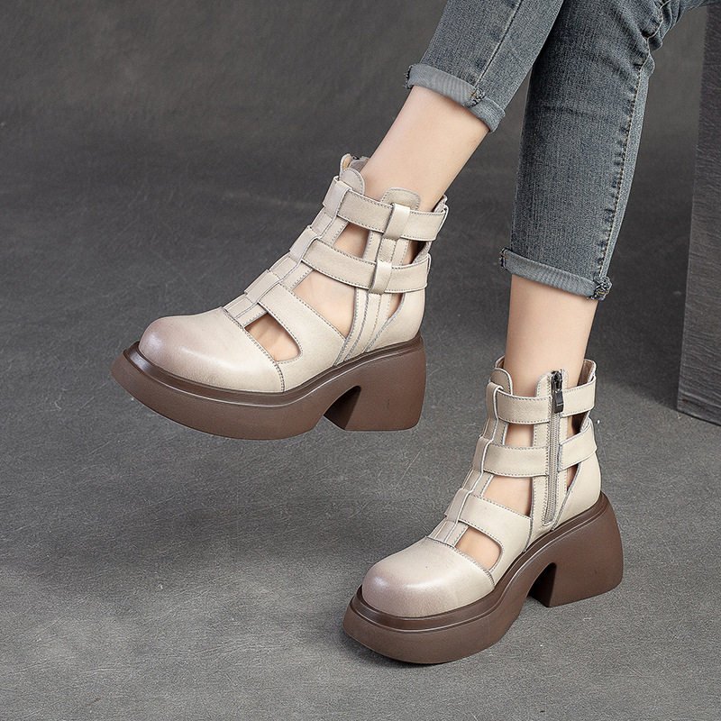 Летние кожаные босоножки с молнией, воловья кожа