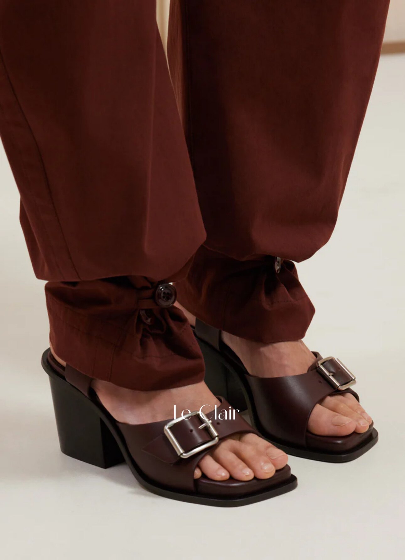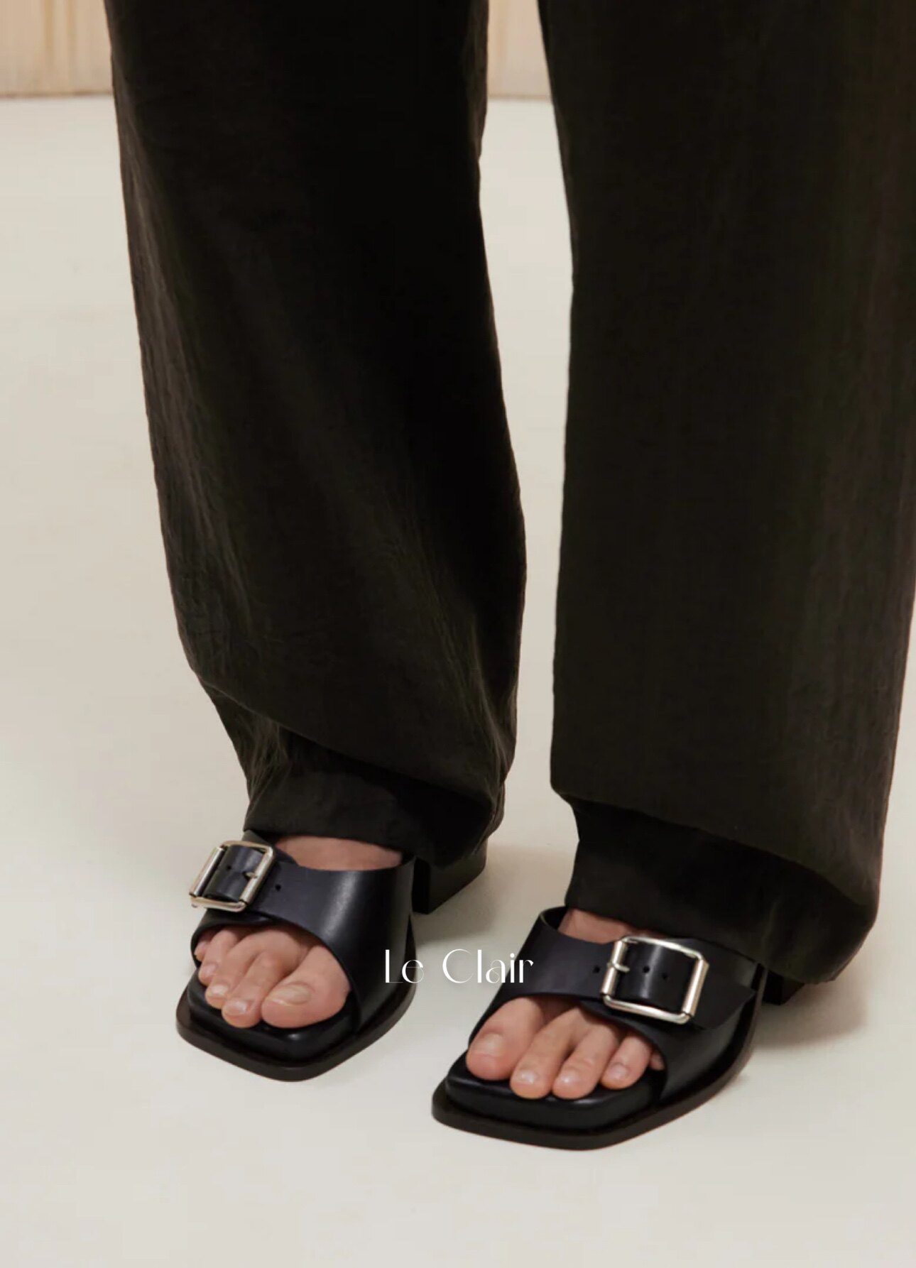 Lemaire 24 весна и летние черные/табак/темно -коричневая квадратная головка толстые каблуки с простыми сандалиями с открытыми