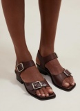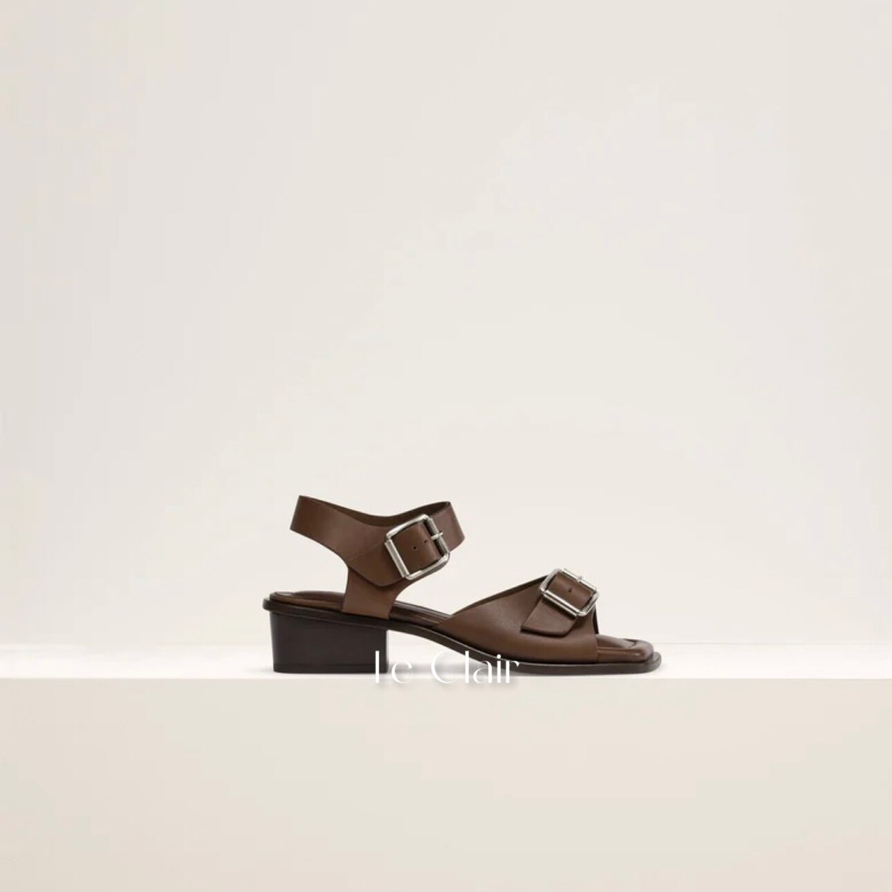 Lemaire 24 весна и летние черные/табак/темно -коричневая квадратная головка толстые каблуки с простыми сандалиями с открытыми