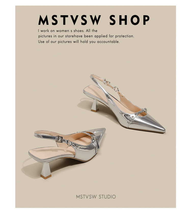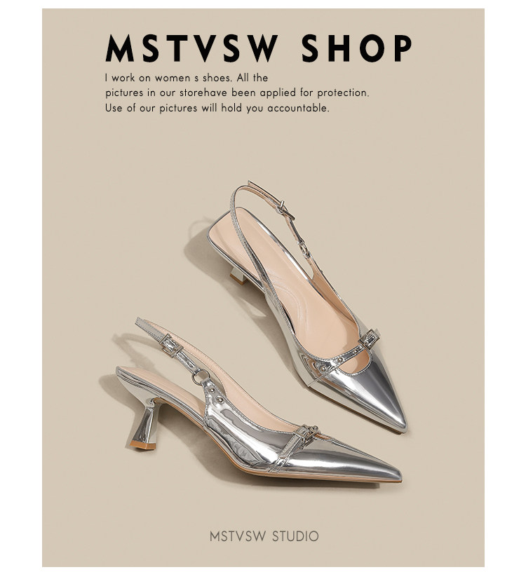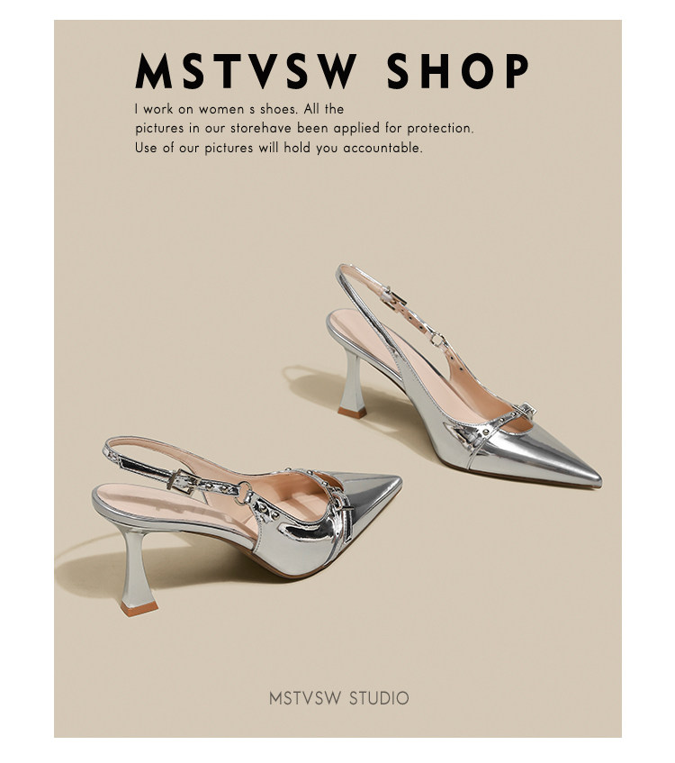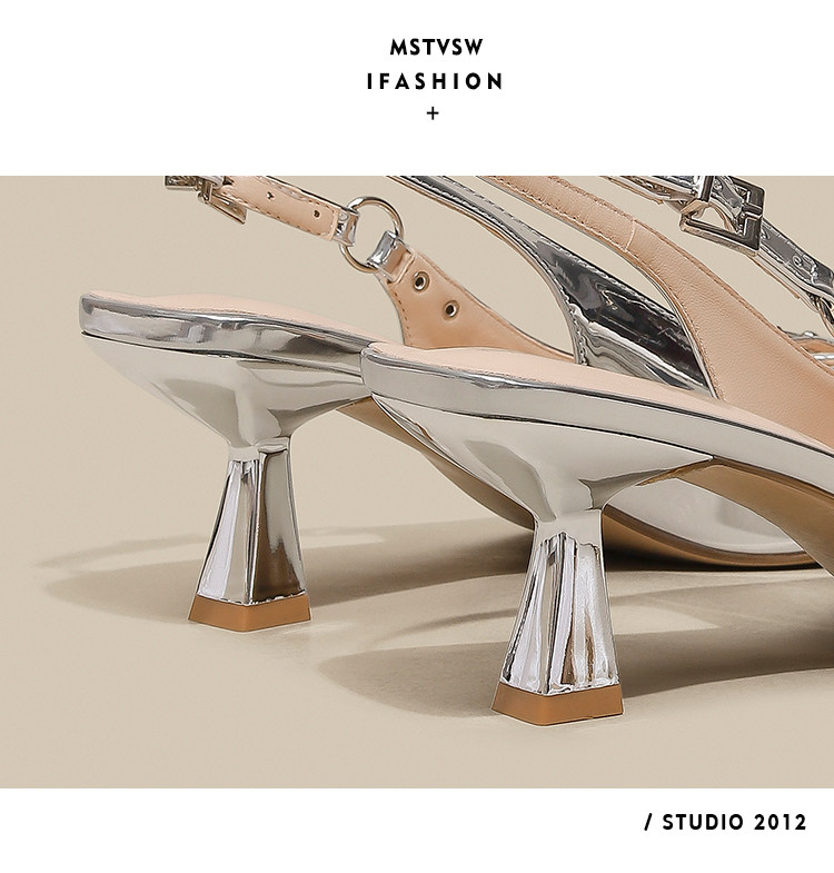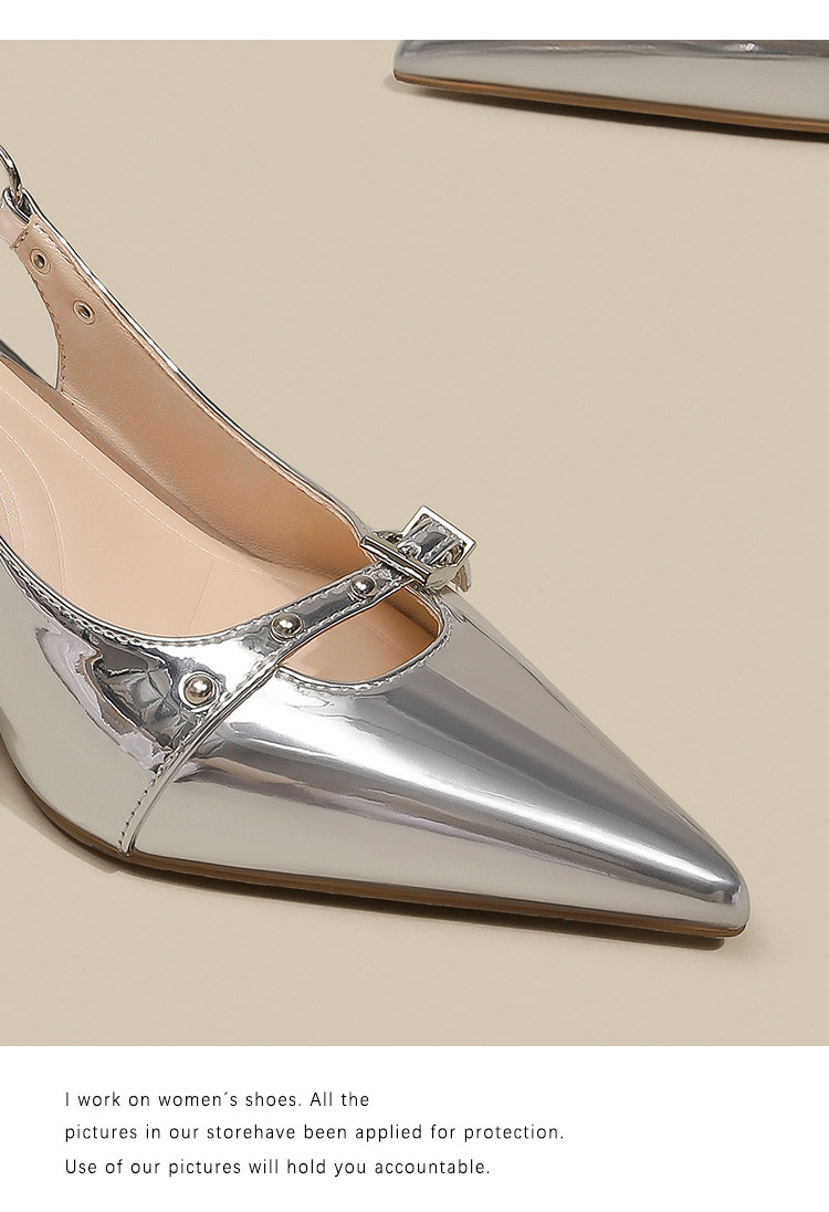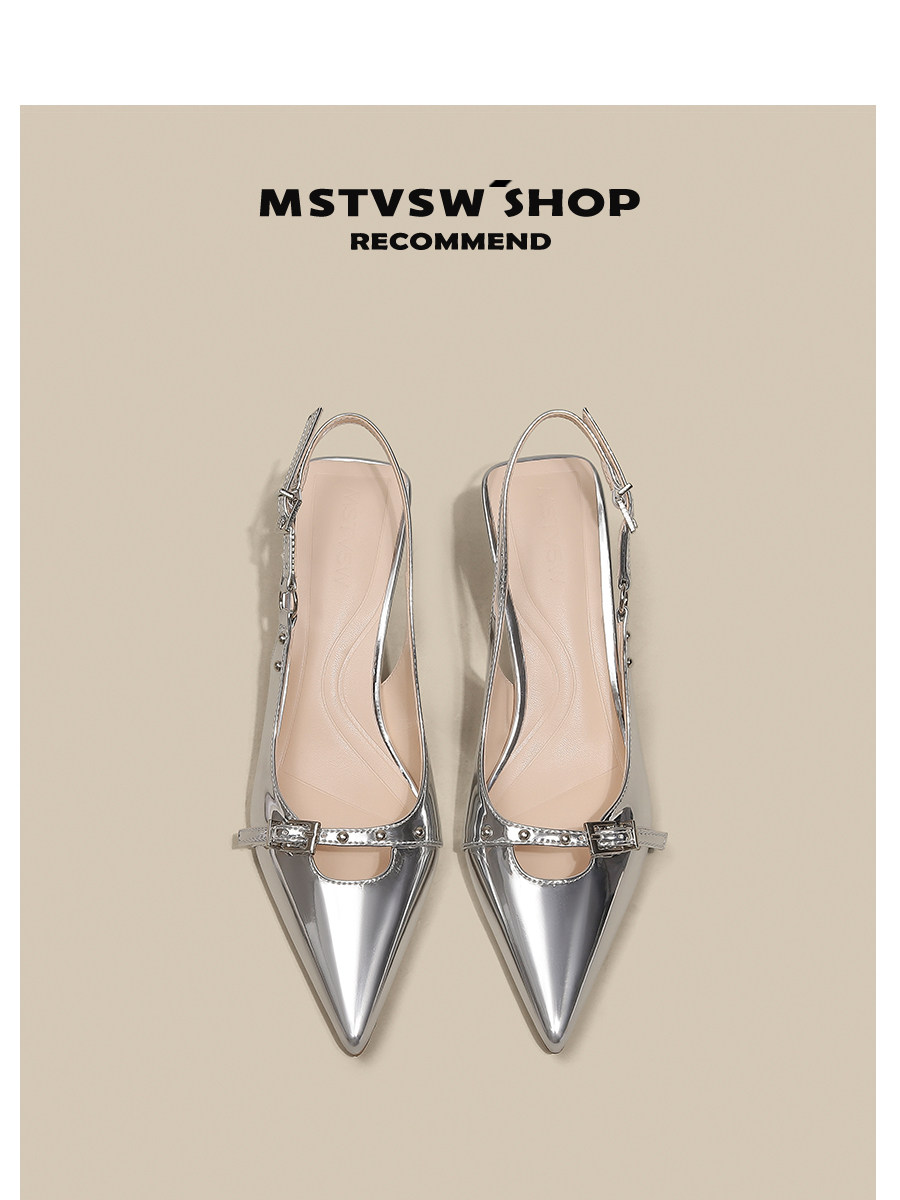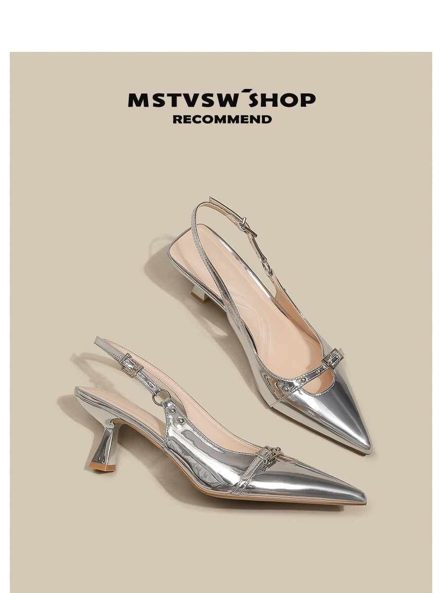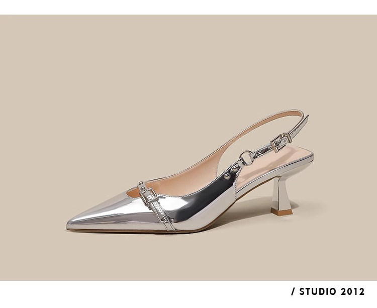 Серебряные туфли на высоком каблуке с заостренным носом, обувь, сандалии, французский стиль