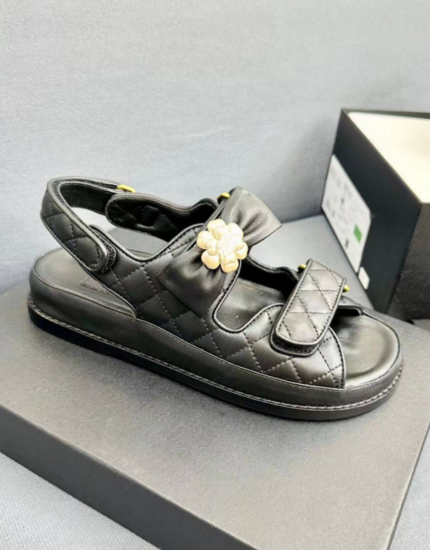Летние босоножки на липучке, пляжная пляжная обувь с бантиком, в стиле Шанель, из натуральной кожи, в цветочек
