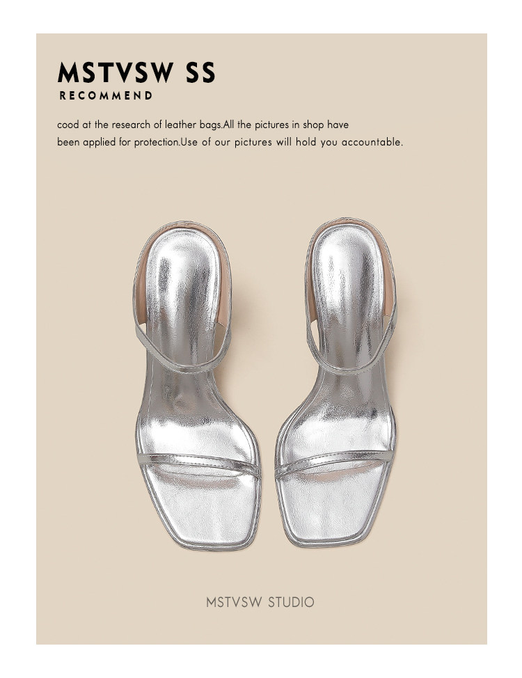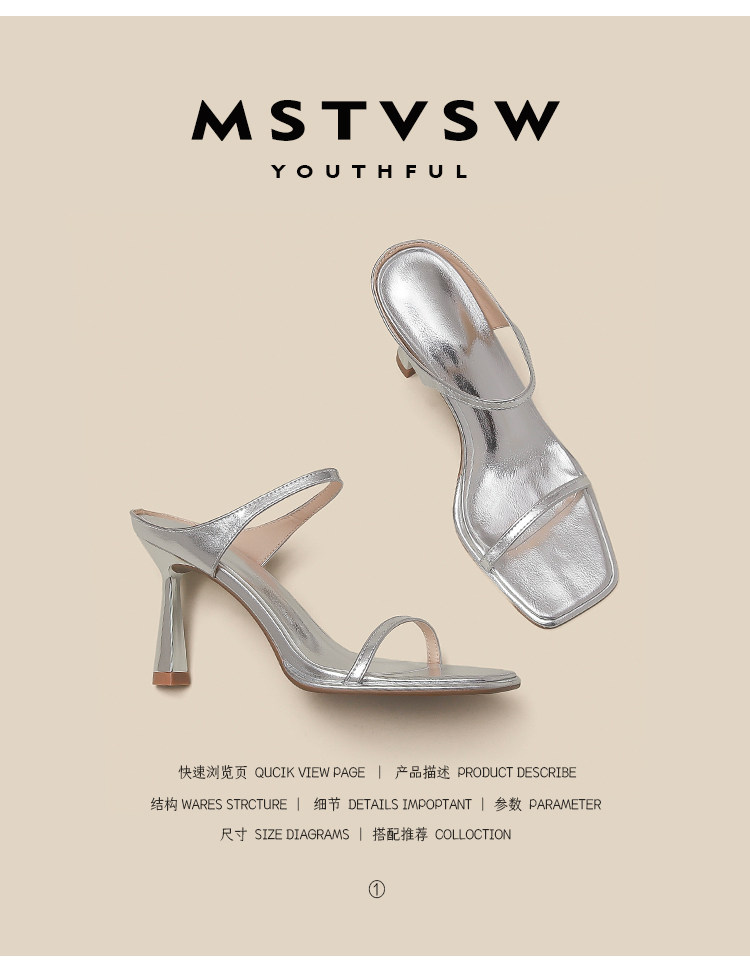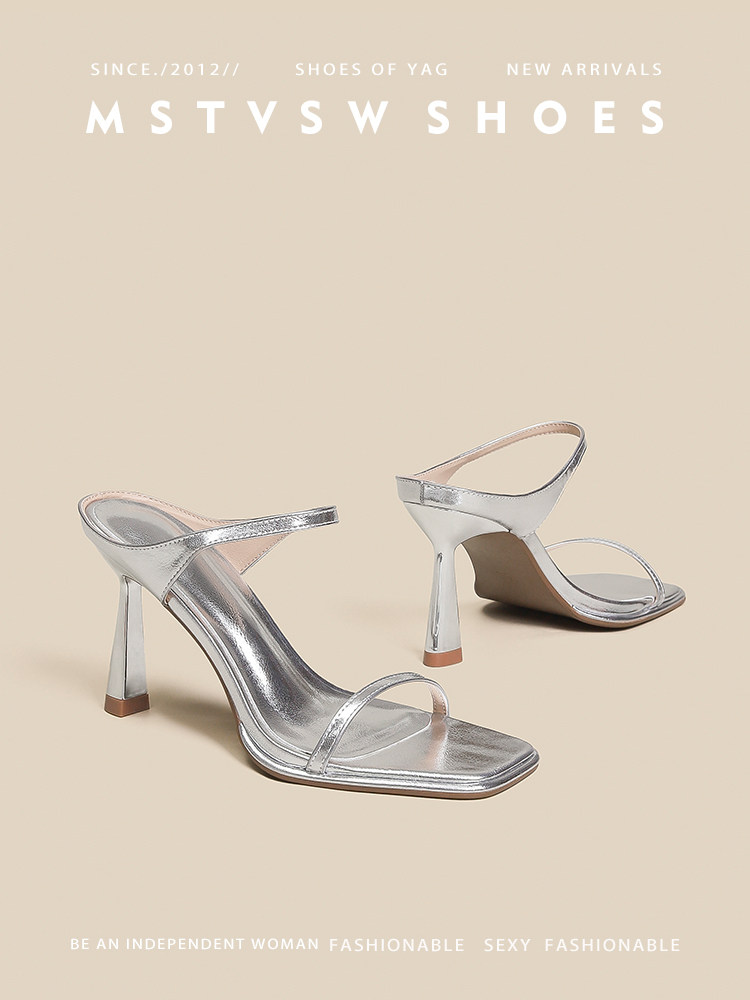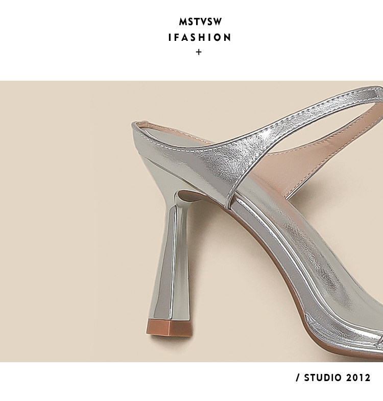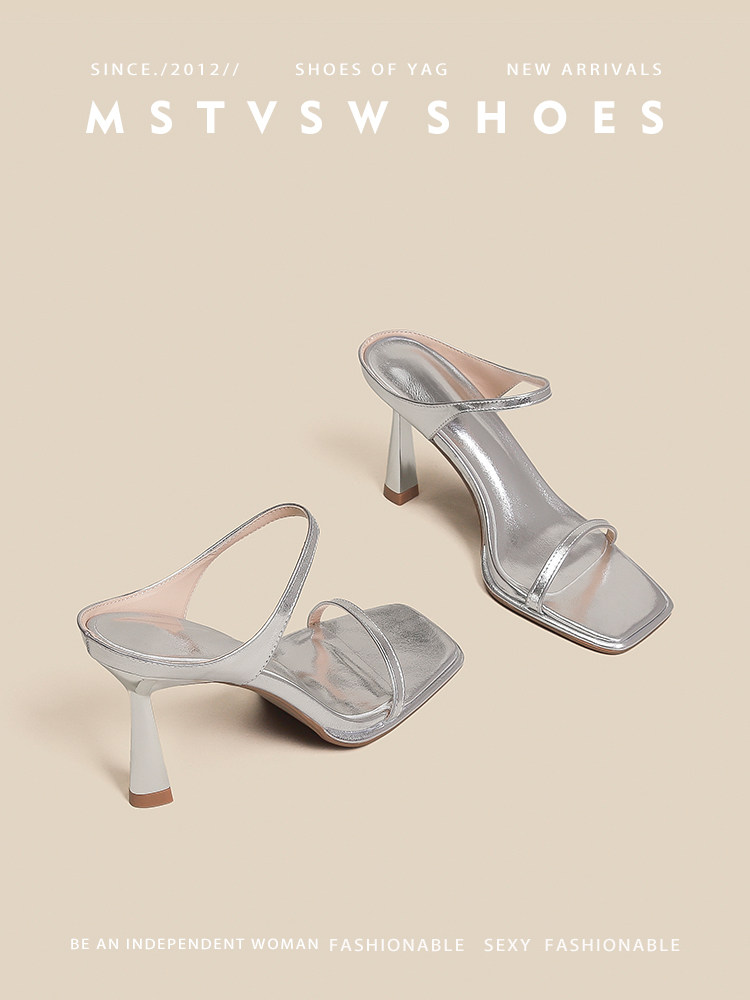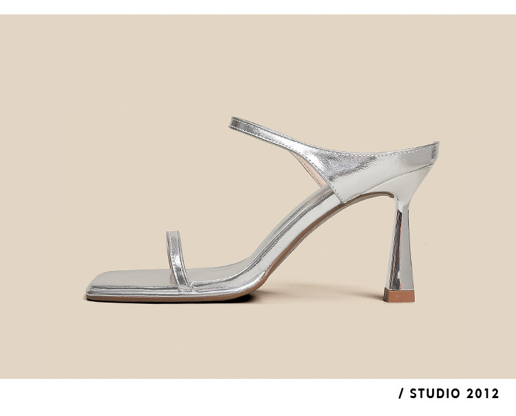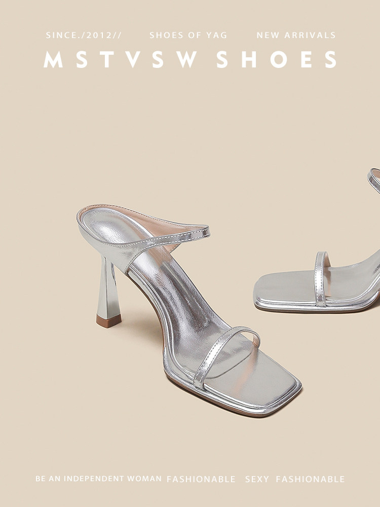 Серебряные туфли на высоком каблуке на высоком каблуке, слайдеры, тапочки, обувь, сандалии, французский стиль, изысканный стиль
