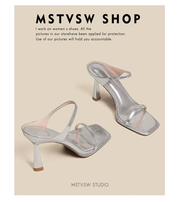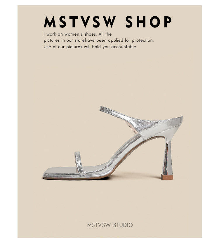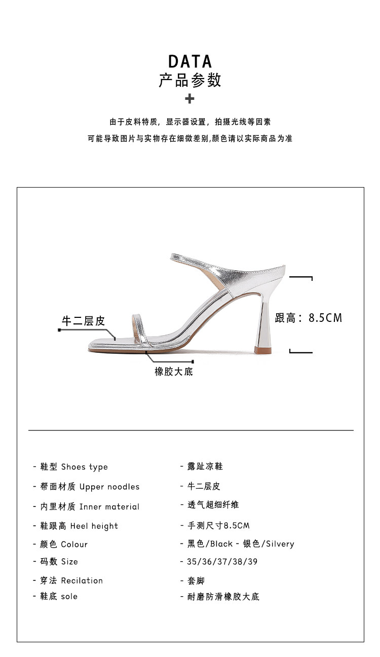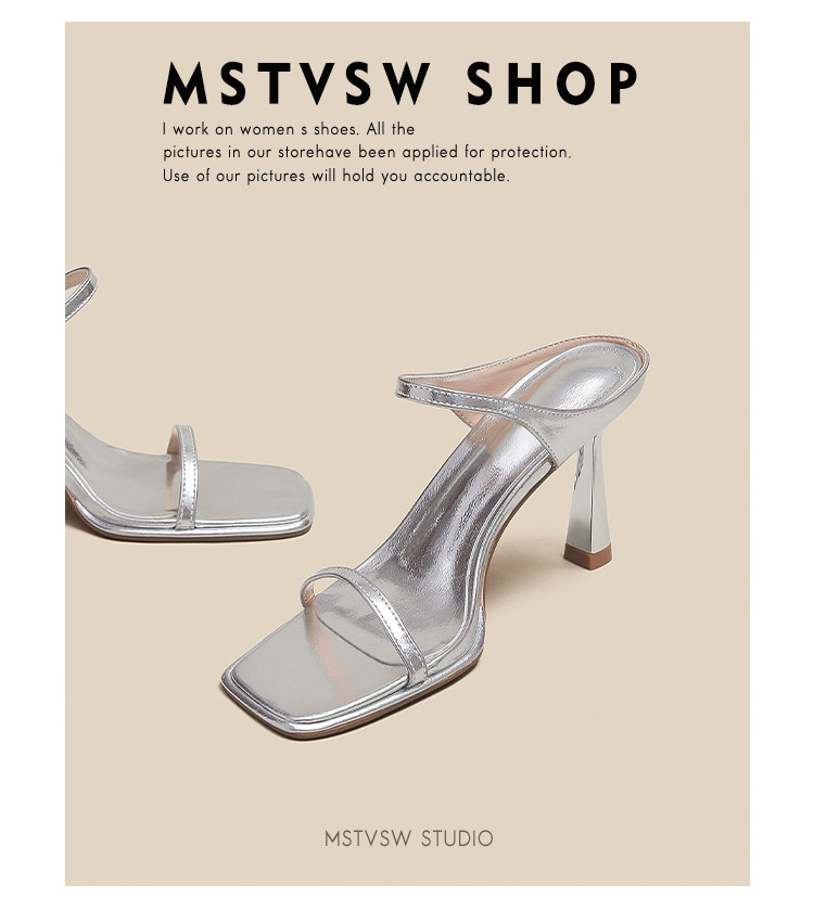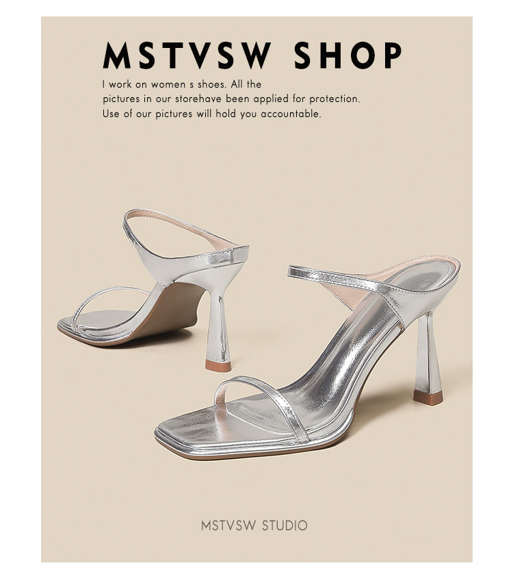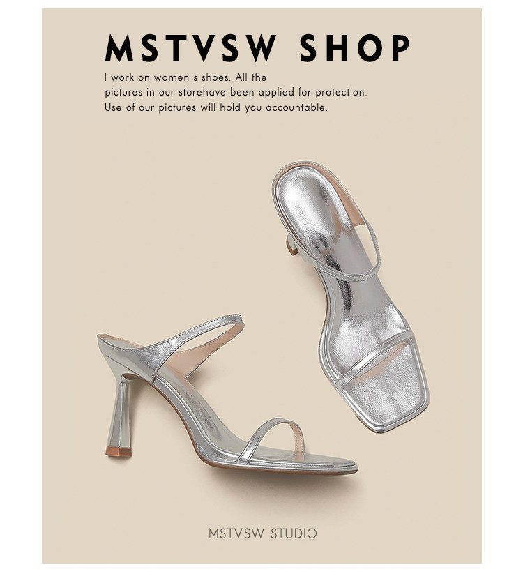 Серебряные туфли на высоком каблуке на высоком каблуке, слайдеры, тапочки, обувь, сандалии, французский стиль, изысканный стиль