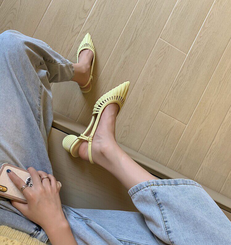 Летние босоножки, туфли на высоком каблуке, французский стиль, из натуральной кожи