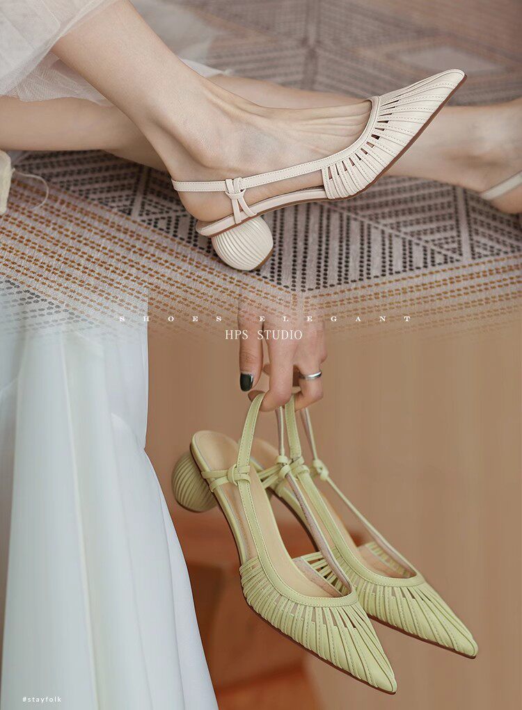 Ретро летние босоножки, плетеные туфли на высоком каблуке, французский стиль