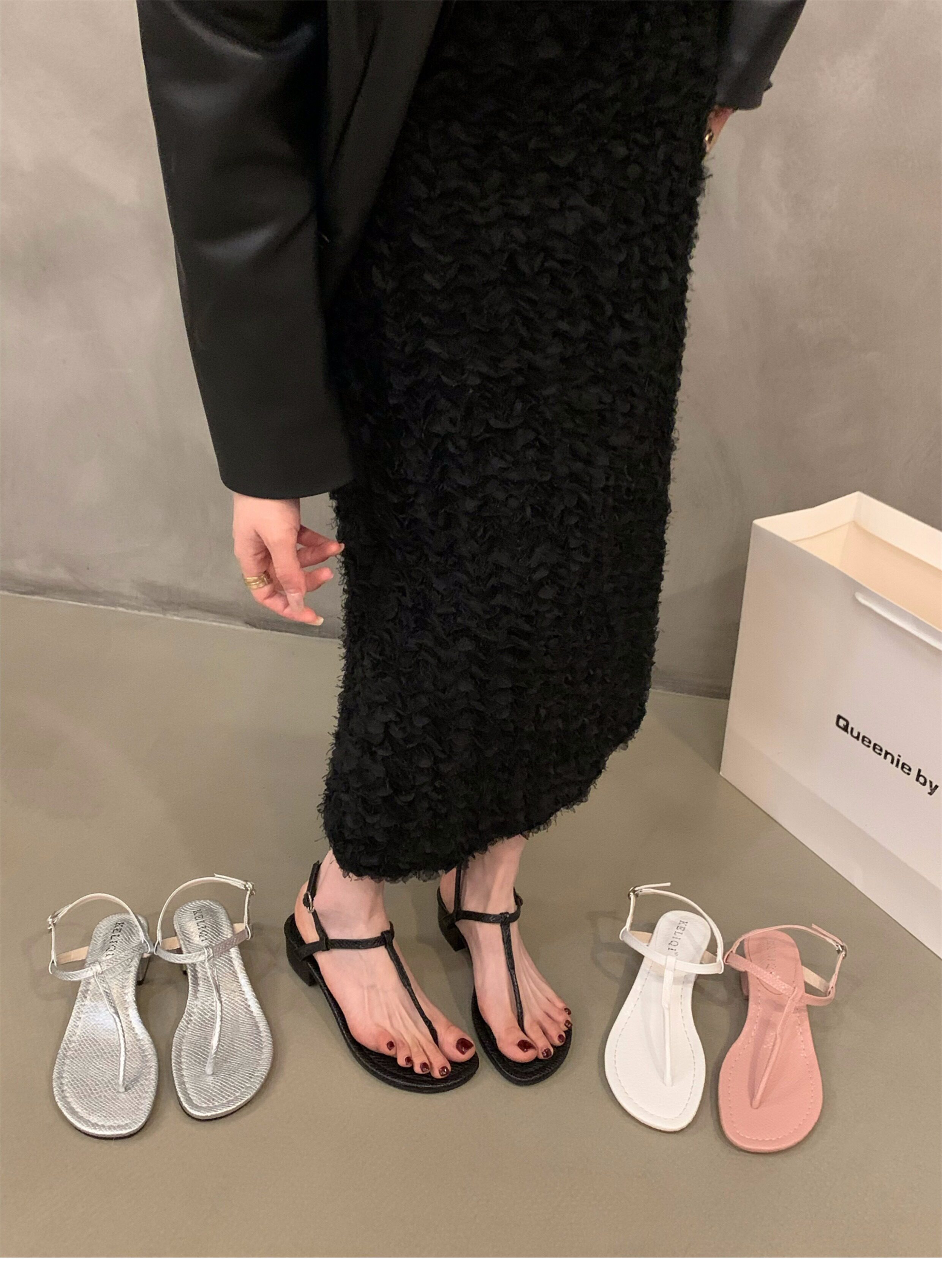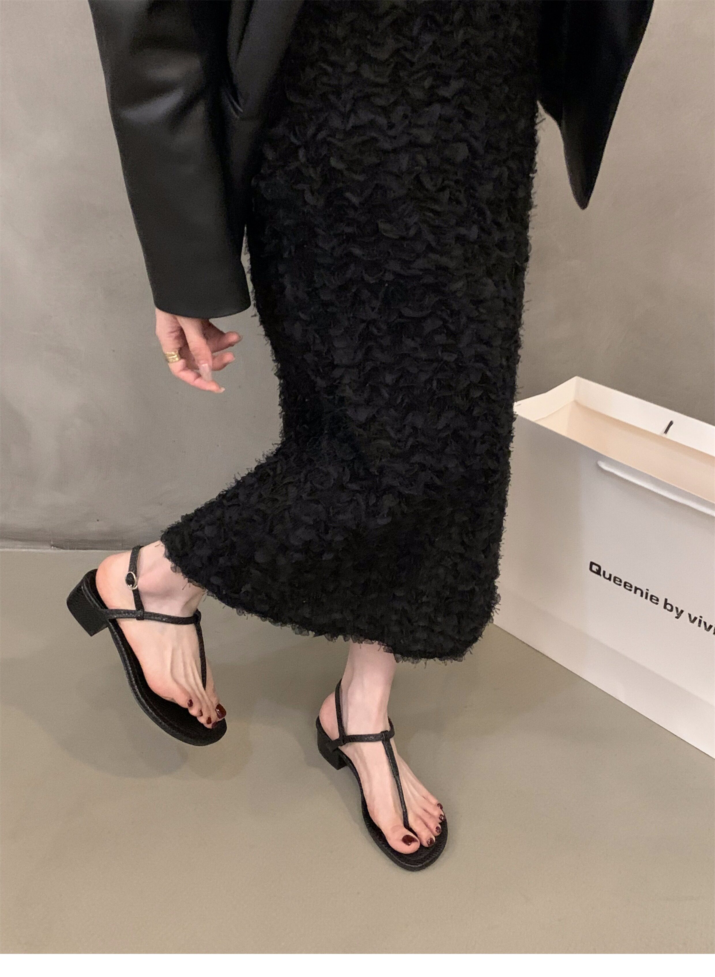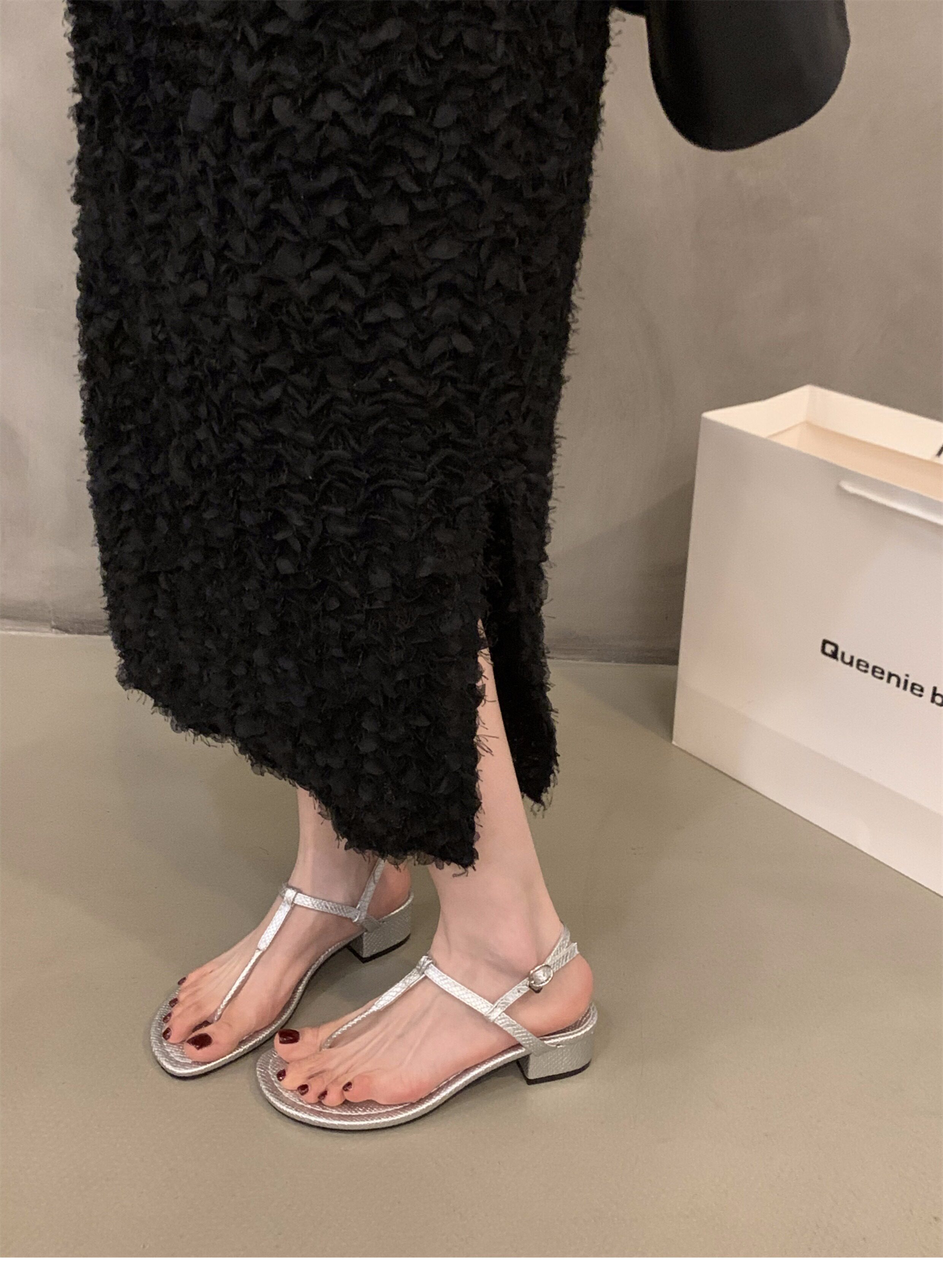 Черные сандалии, обувь, летняя подходит с юбкой, французский стиль, тонкий ремешок