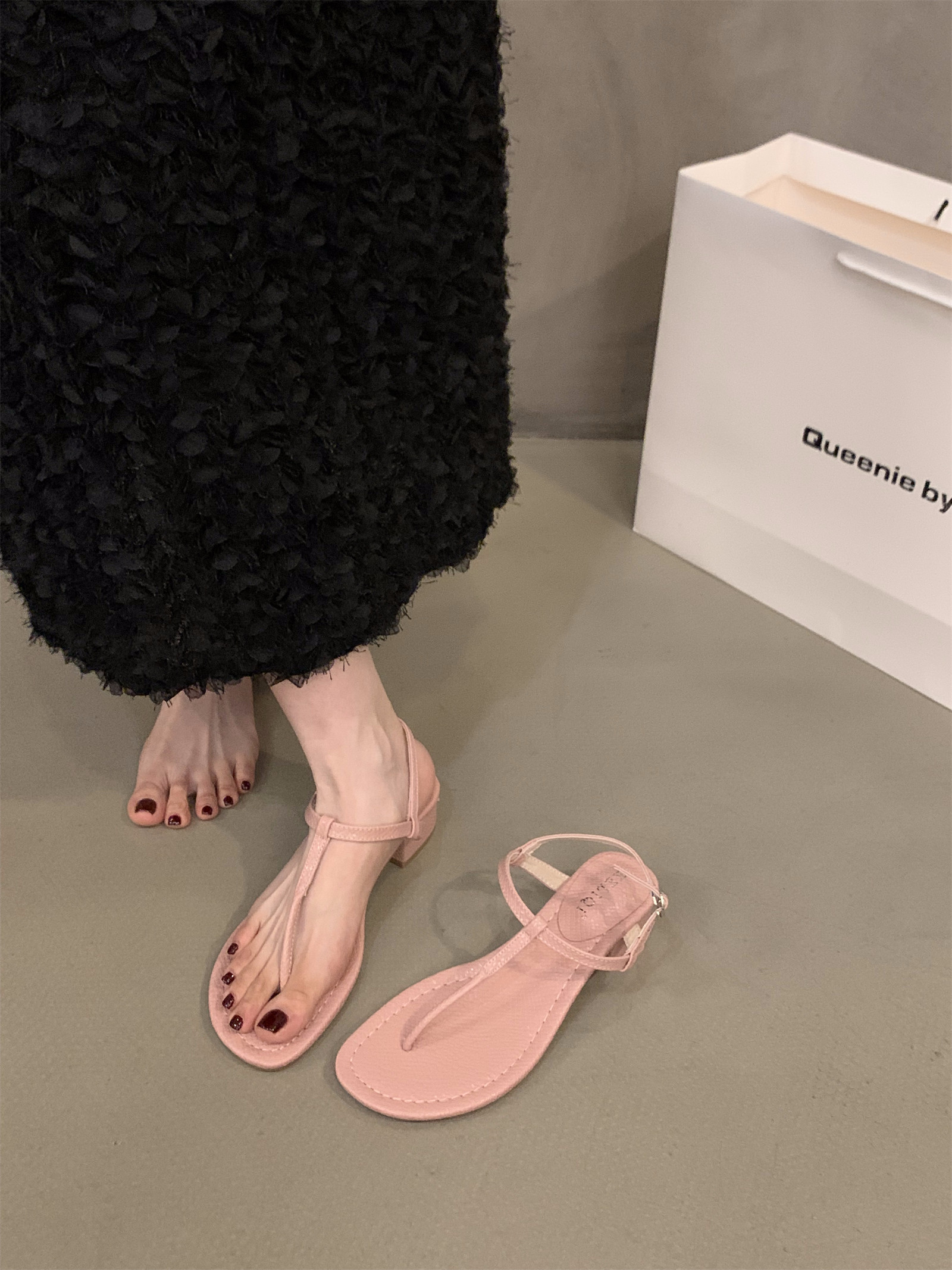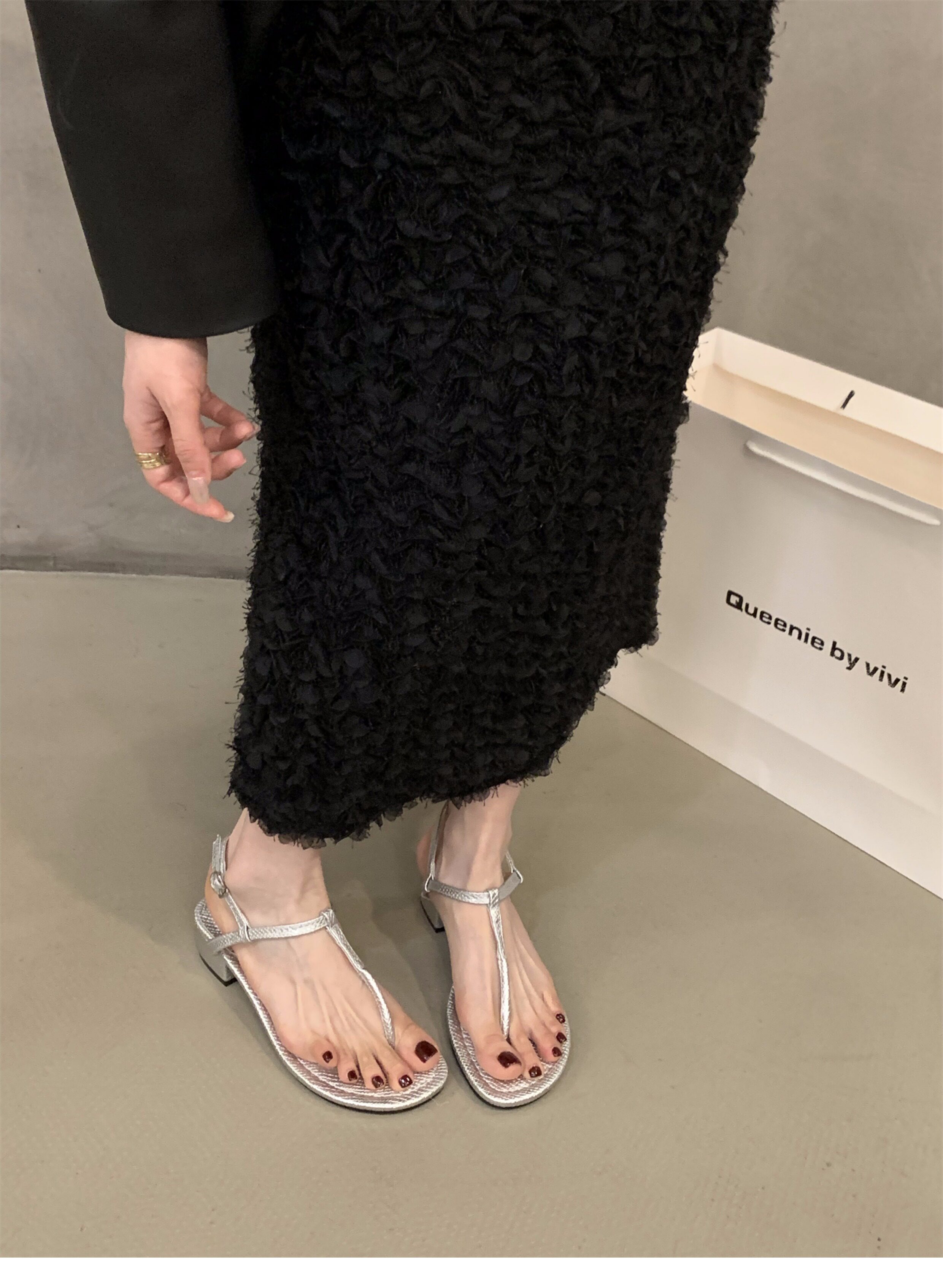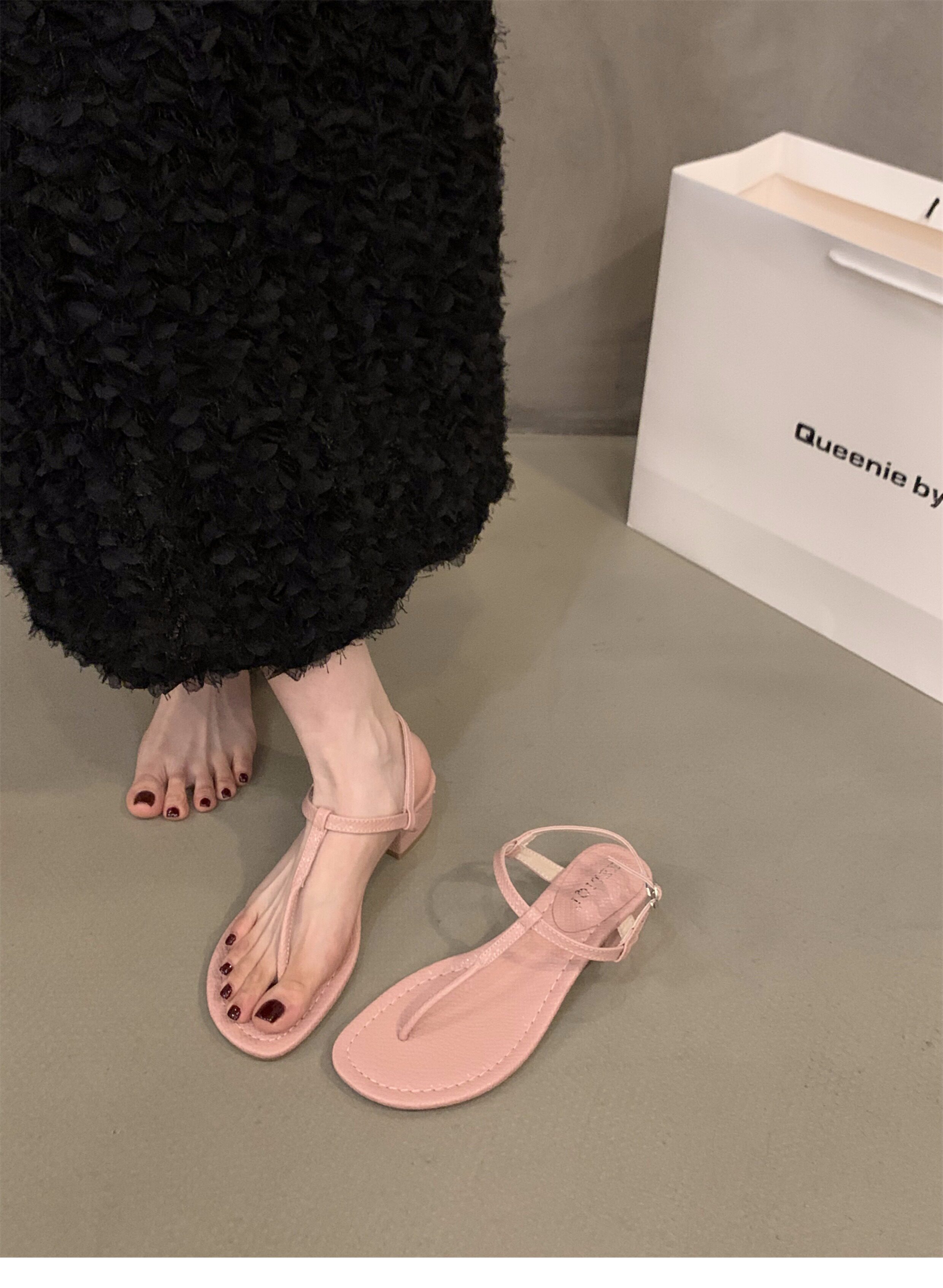 Черные сандалии, обувь, летняя подходит с юбкой, французский стиль, тонкий ремешок