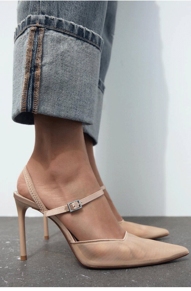 Zara, сетчатые дышащие летние сексуальные туфли на высоком каблуке, модные босоножки с ремешком
