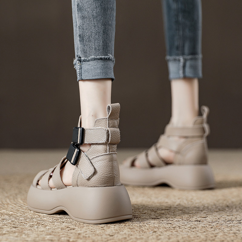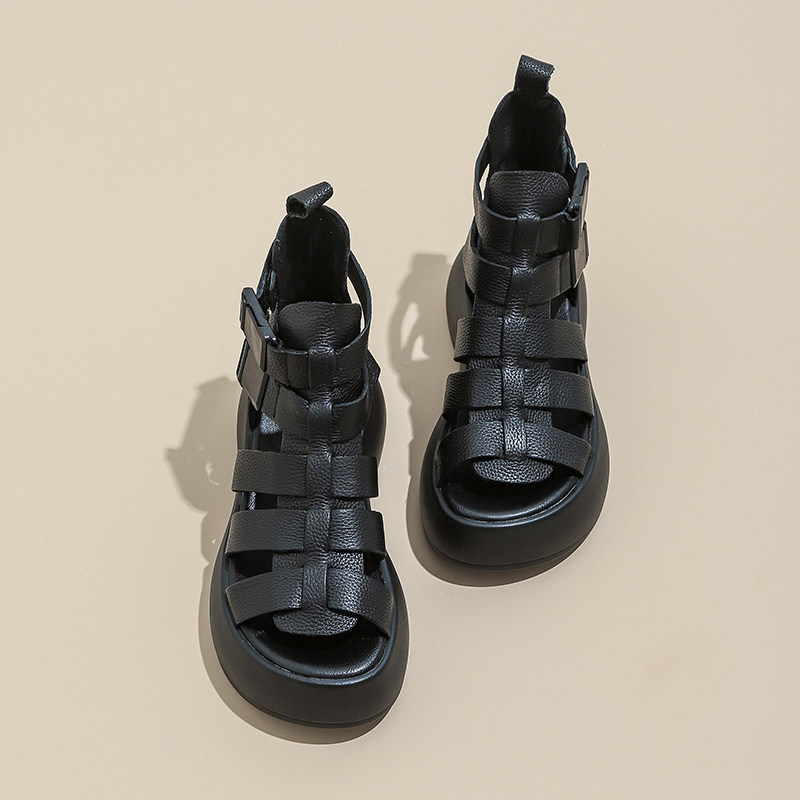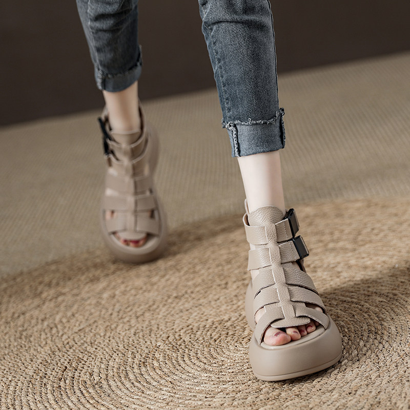 Высокие сапоги, плетеные босоножки, летние дышащие короткие сапоги, ботинки, из натуральной кожи