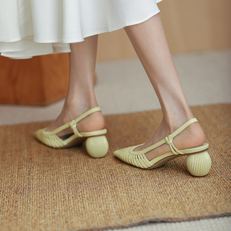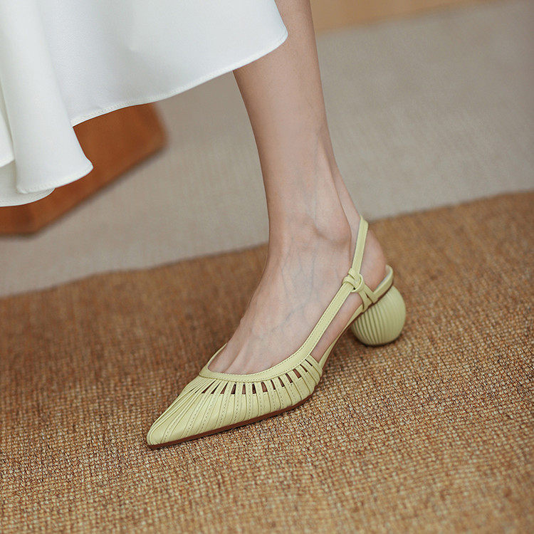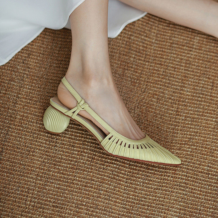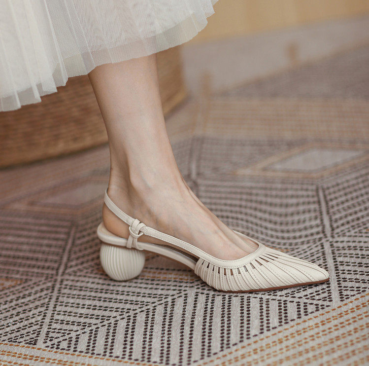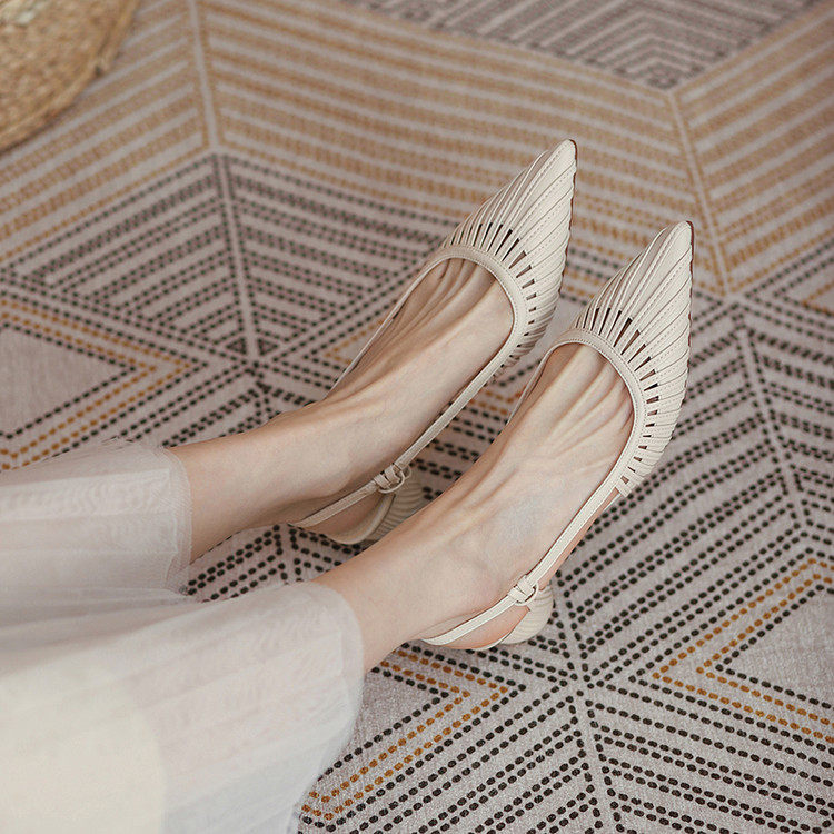 Итальянские летние новые стильные босоножки Shankfira в стиле французского ретро, легкие роскошные женские босоножки на среднем каблуке с острым носком и полым ремешком на спине