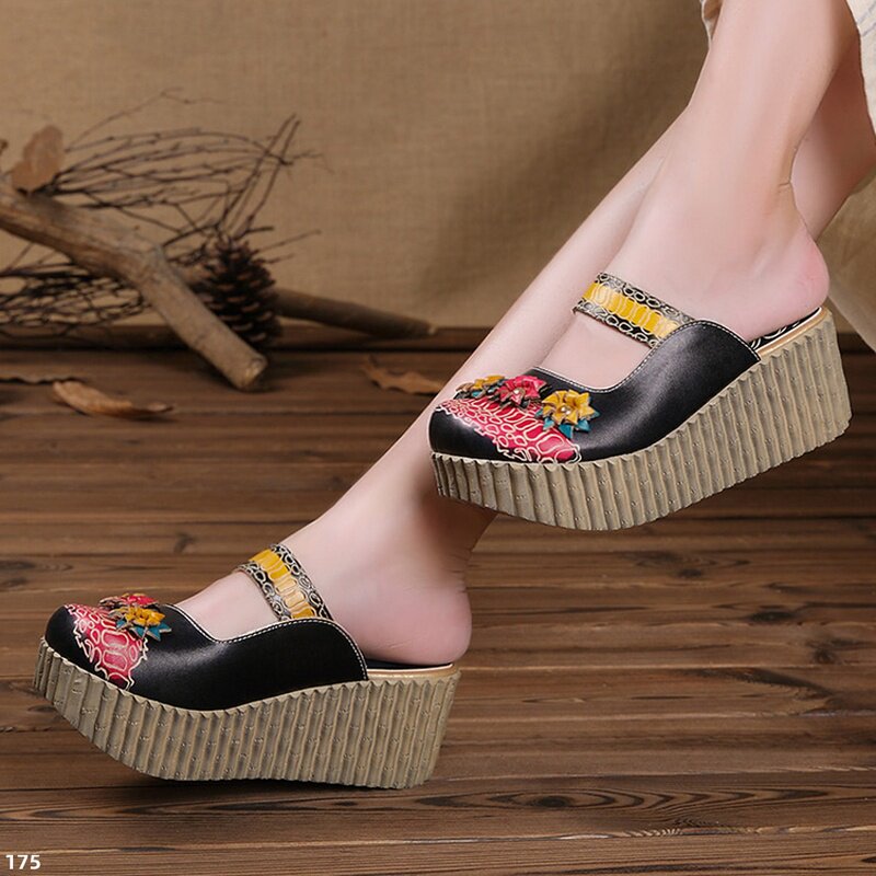 Ретро этнические тапочки, простой и элегантный дизайн, этнический стиль, из натуральной кожи