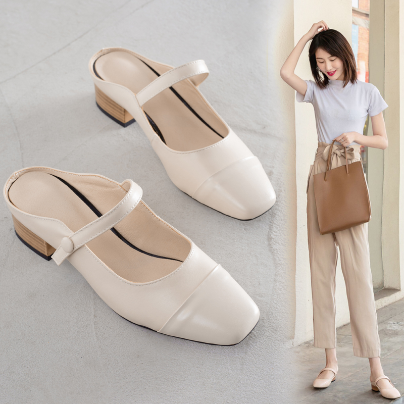 Летние тапочки, обувь, туфли на высоком каблуке, слайдеры, в корейском стиле