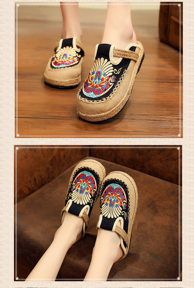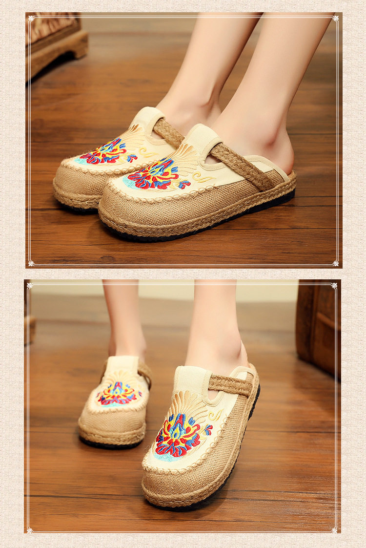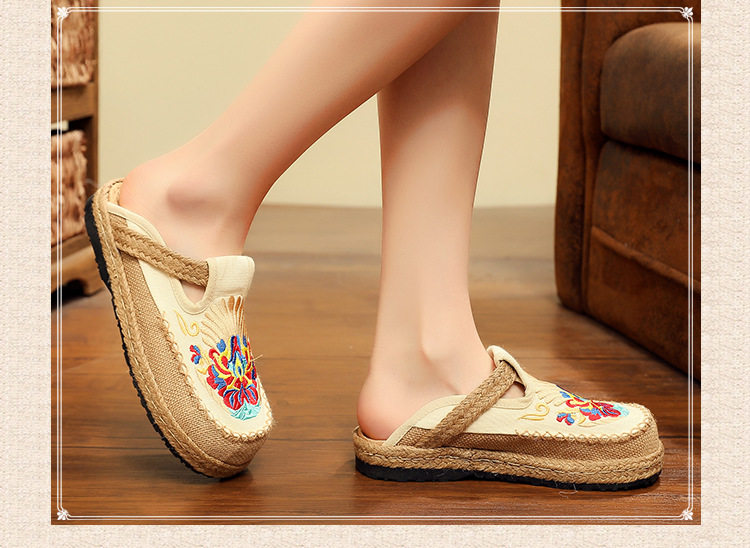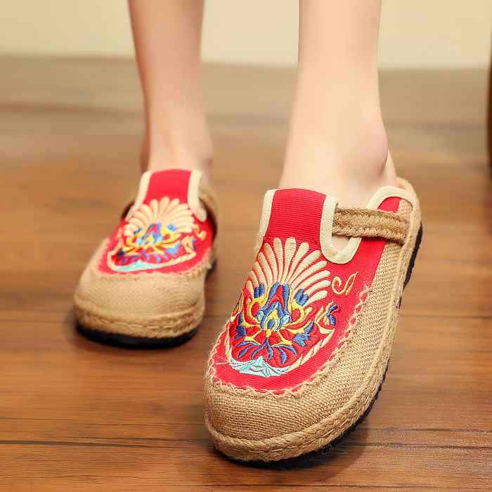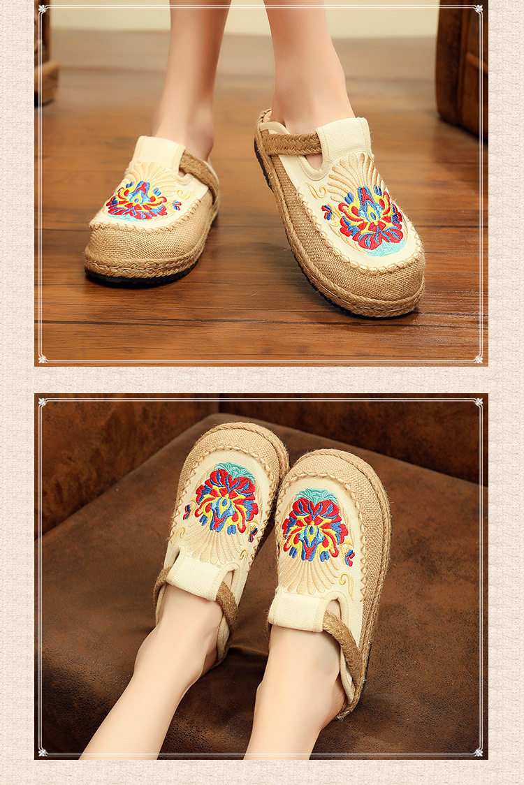 Летние слипоны, этническая обувь, тапочки на платформе, сандалии, этнический стиль