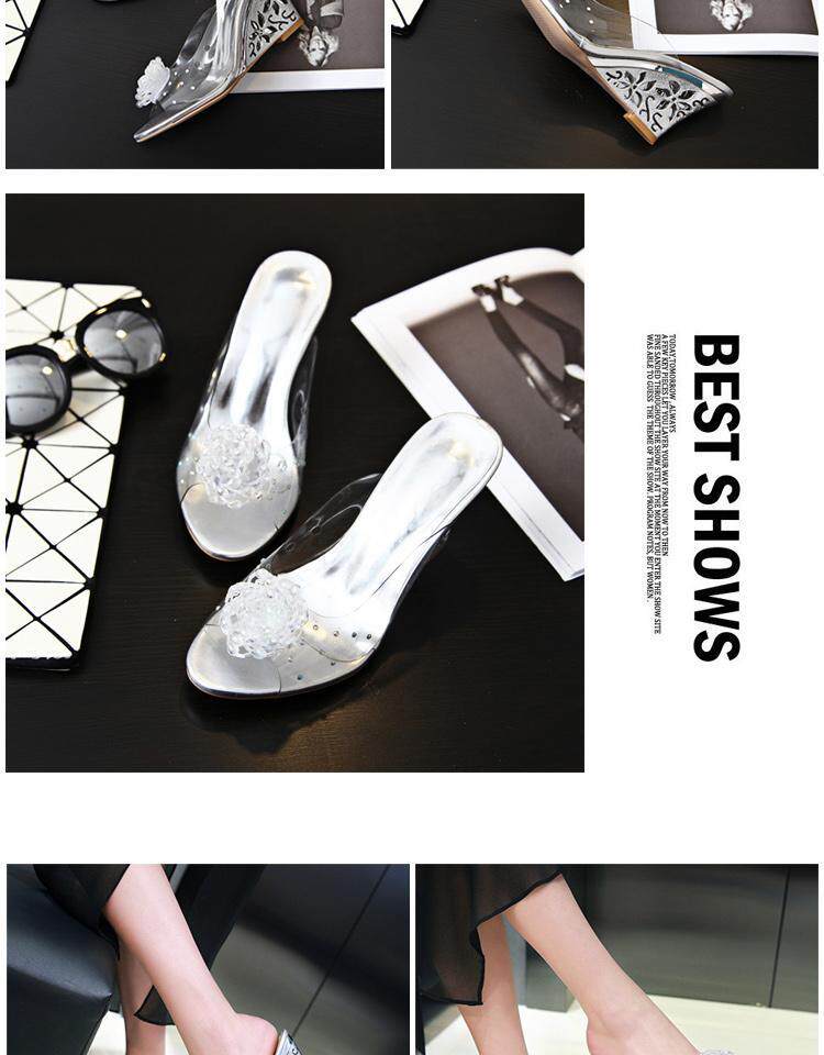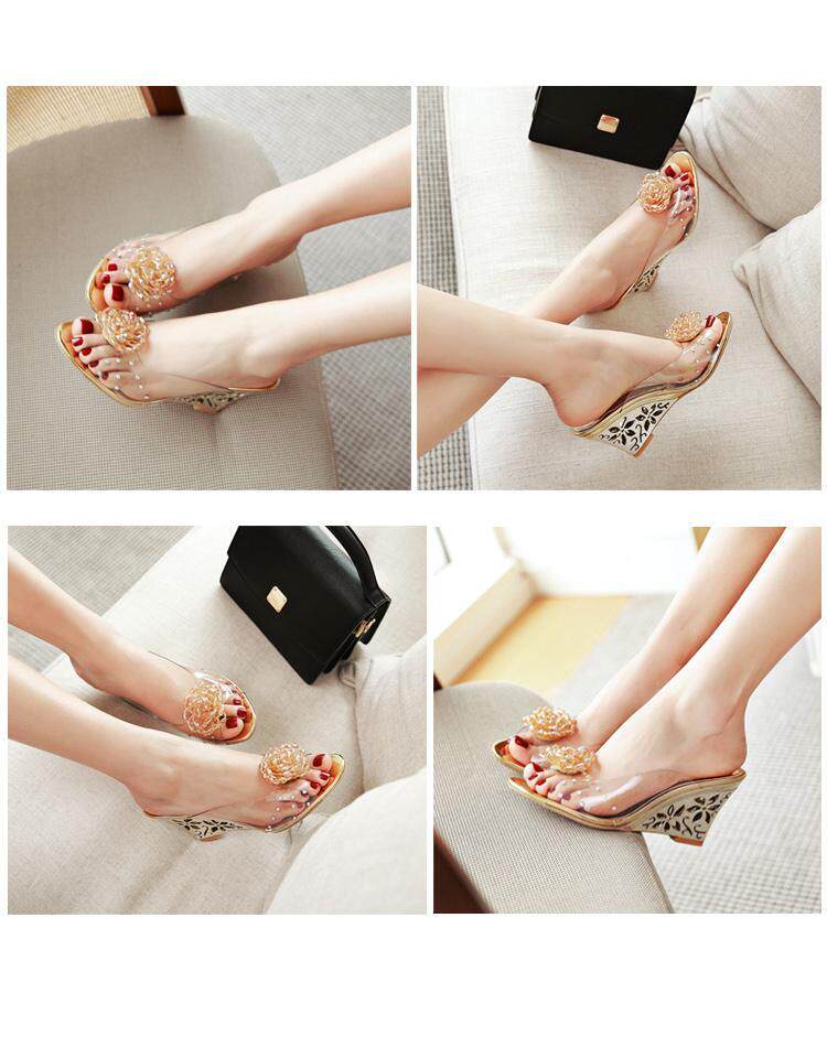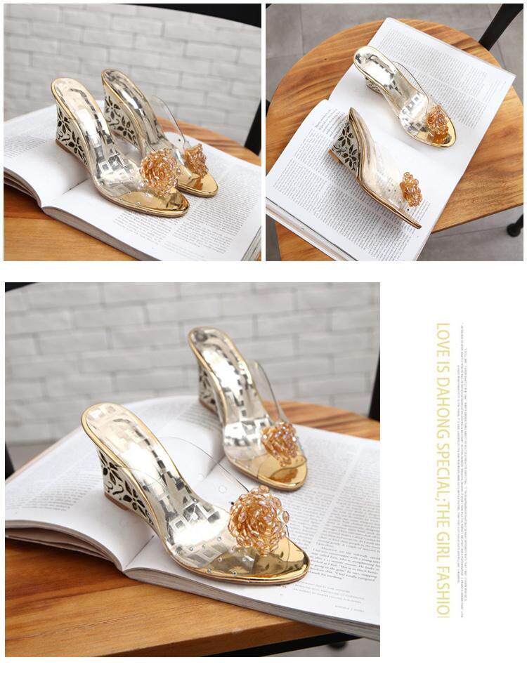 Золотые тапочки, босоножки, 2020, в корейском стиле, в цветочек, большой размер