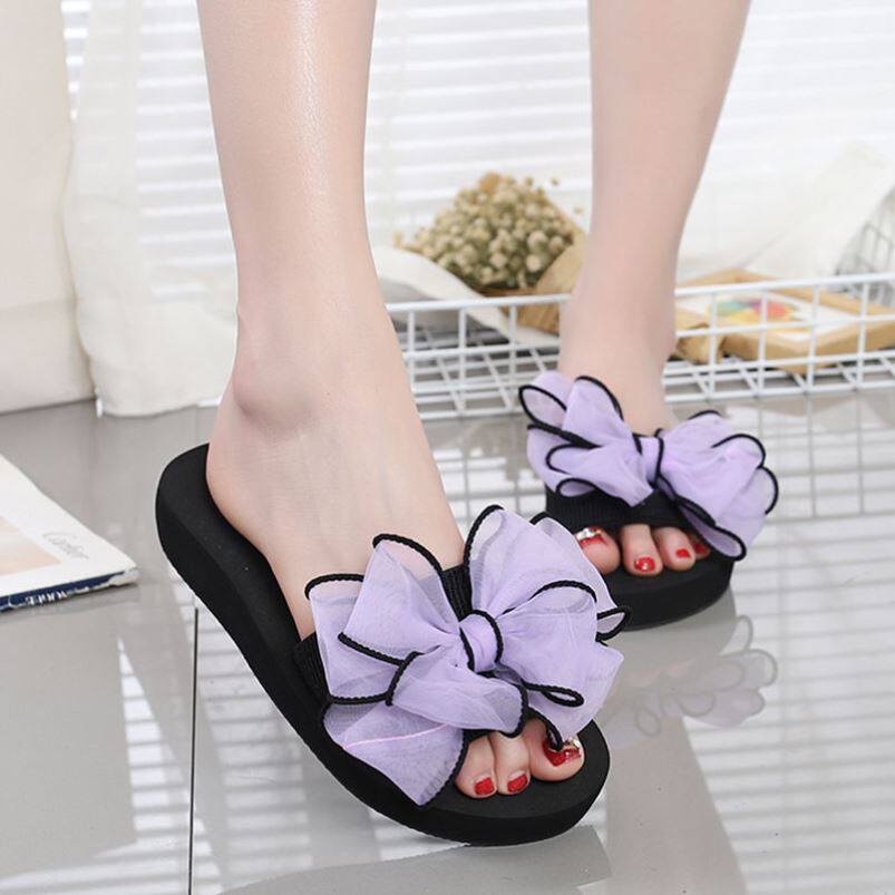 Комфортные универсальные летние модные тапочки с бантиком, мягкая подошва