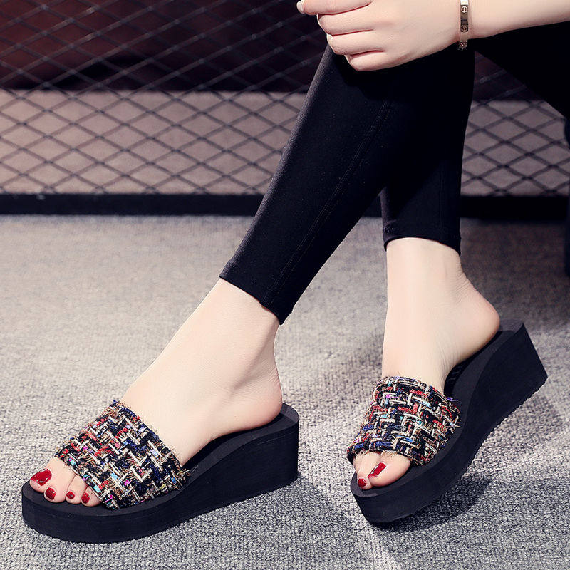 Тапочки, высокие нескользящие модные слайдеры, пляжная обувь, в корейском стиле, популярно в интернете