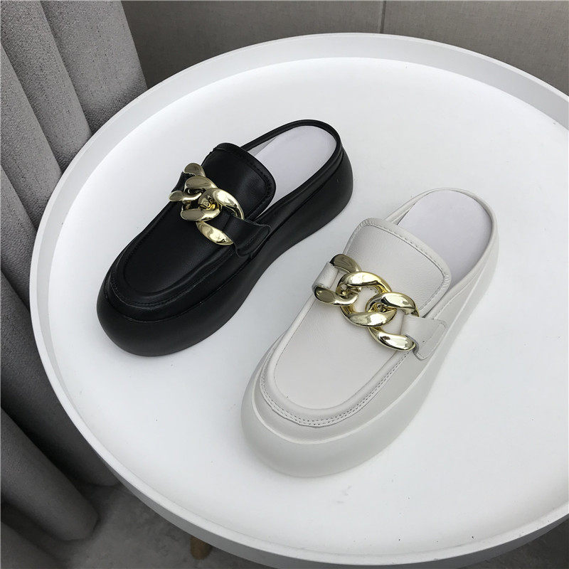 Летняя модная белая обувь, кожаные тапочки, из натуральной кожи, сезон 2021