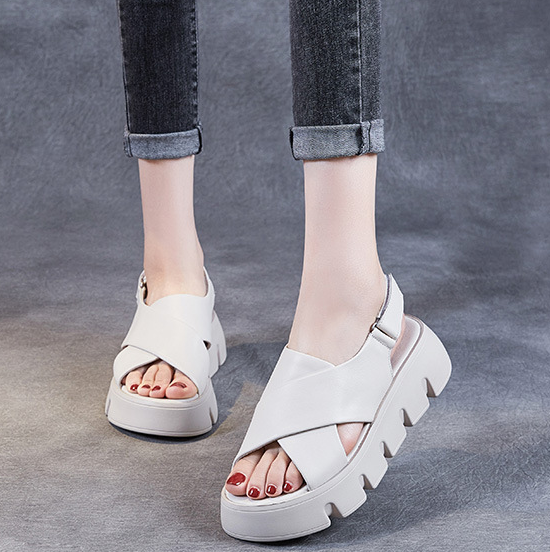 Сандалии на платформе, летняя обувь, кожаные сапоги для отдыха, из натуральной кожи, коллекция 2021, воловья кожа