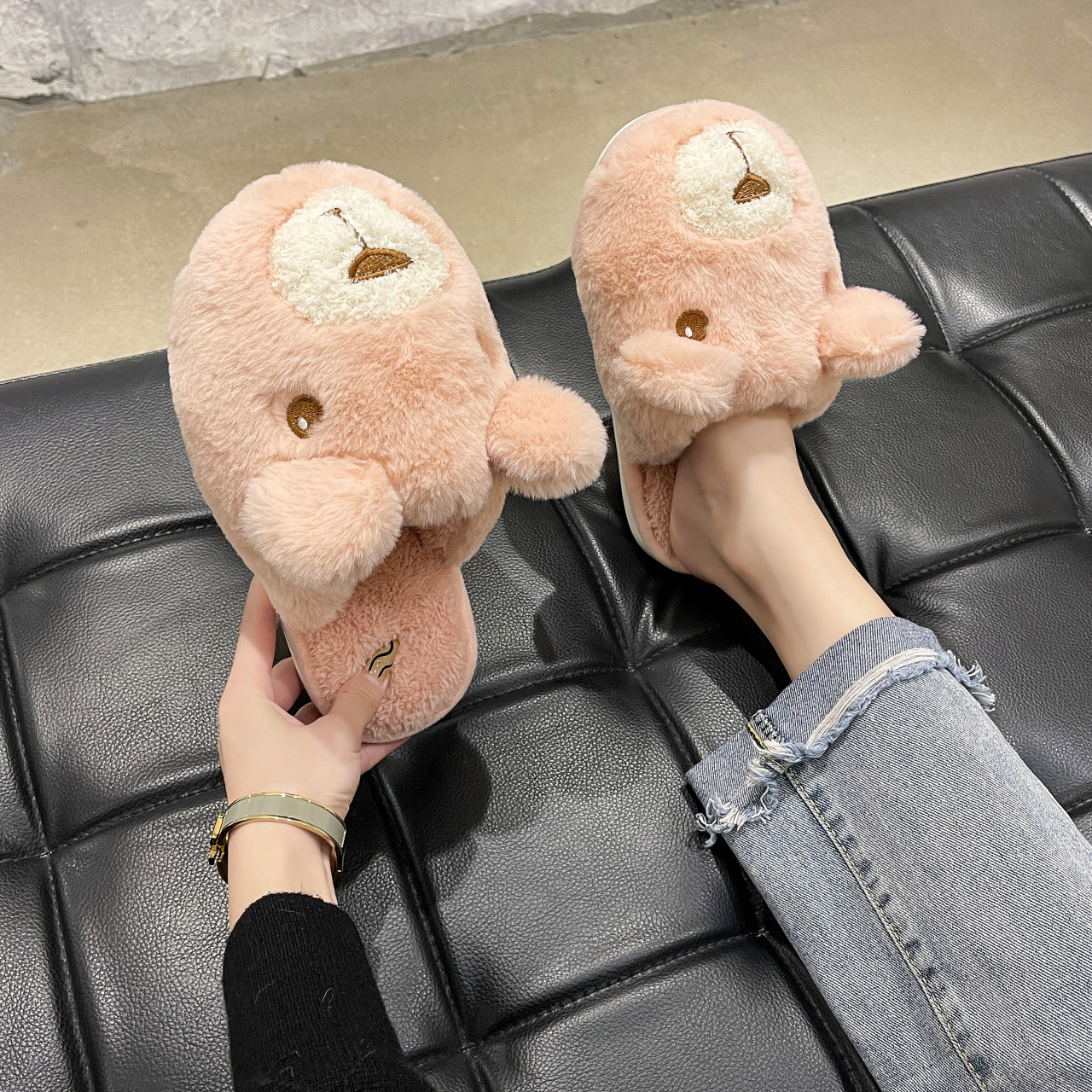 Тапочки, флисовая универсальная милая удерживающая тепло демисезонная обувь на плоской подошве, 2021 года