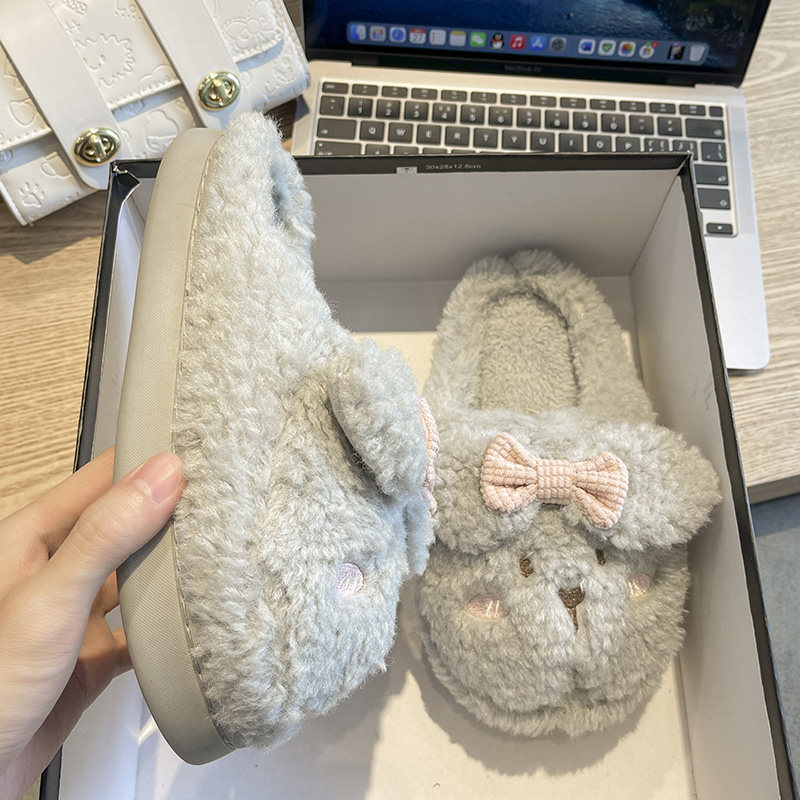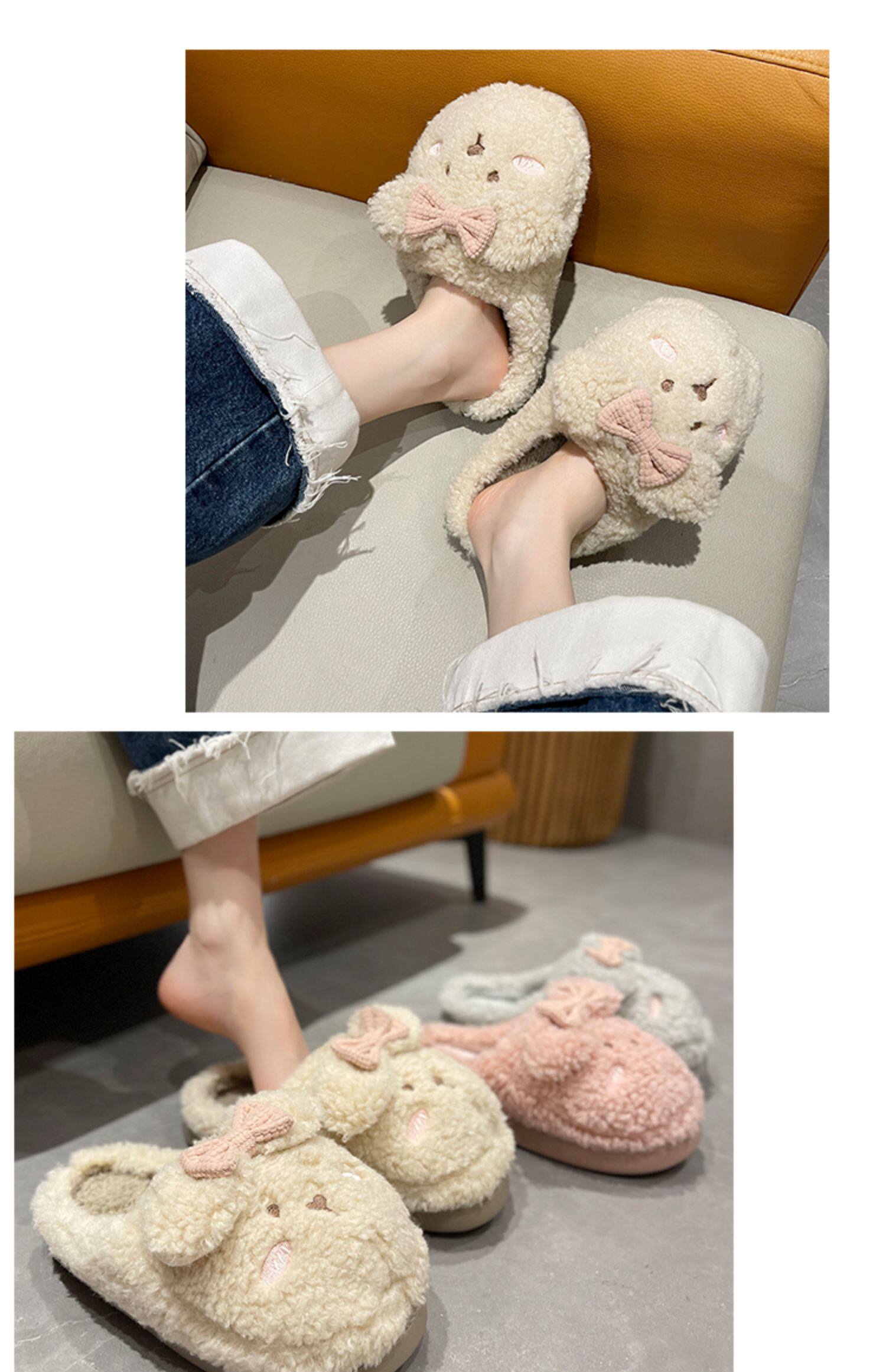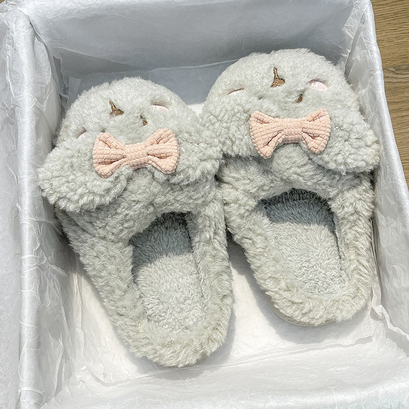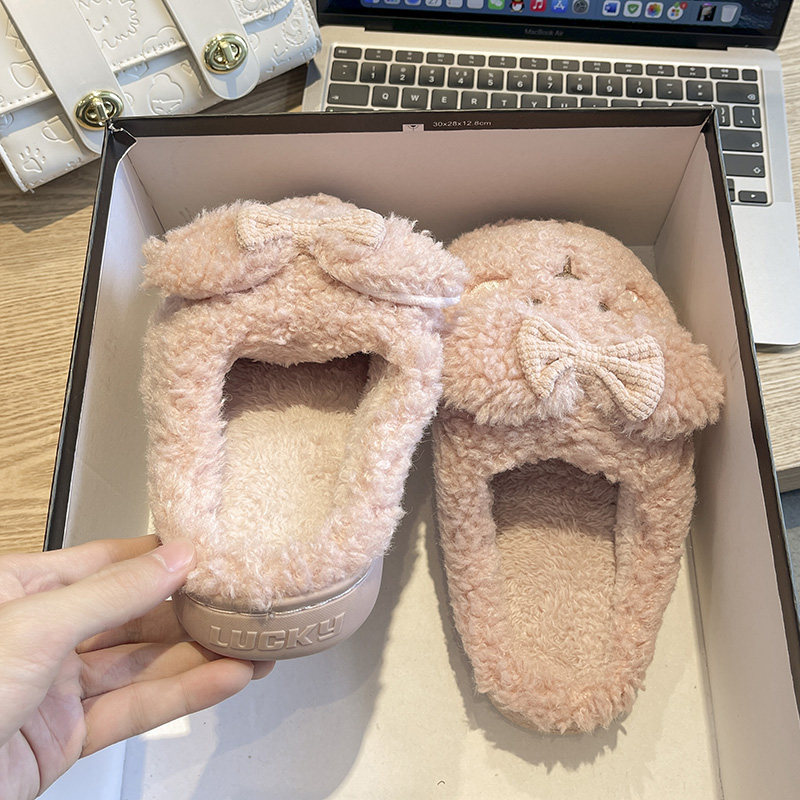 Тапочки, флисовая удерживающая тепло нескользящая демисезонная обувь с бантиком