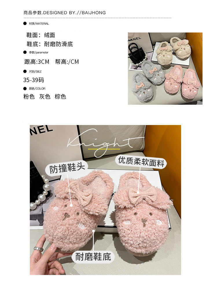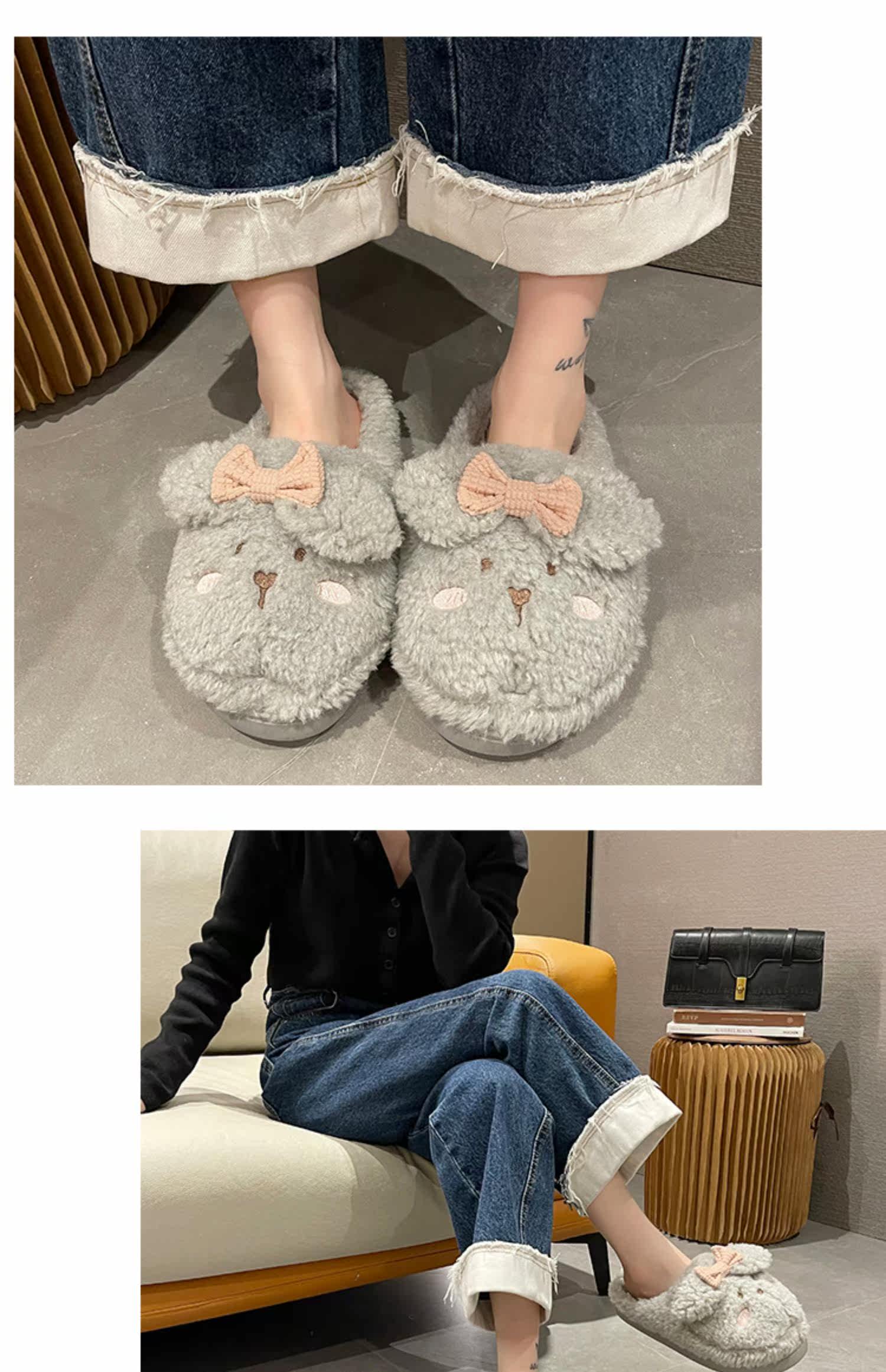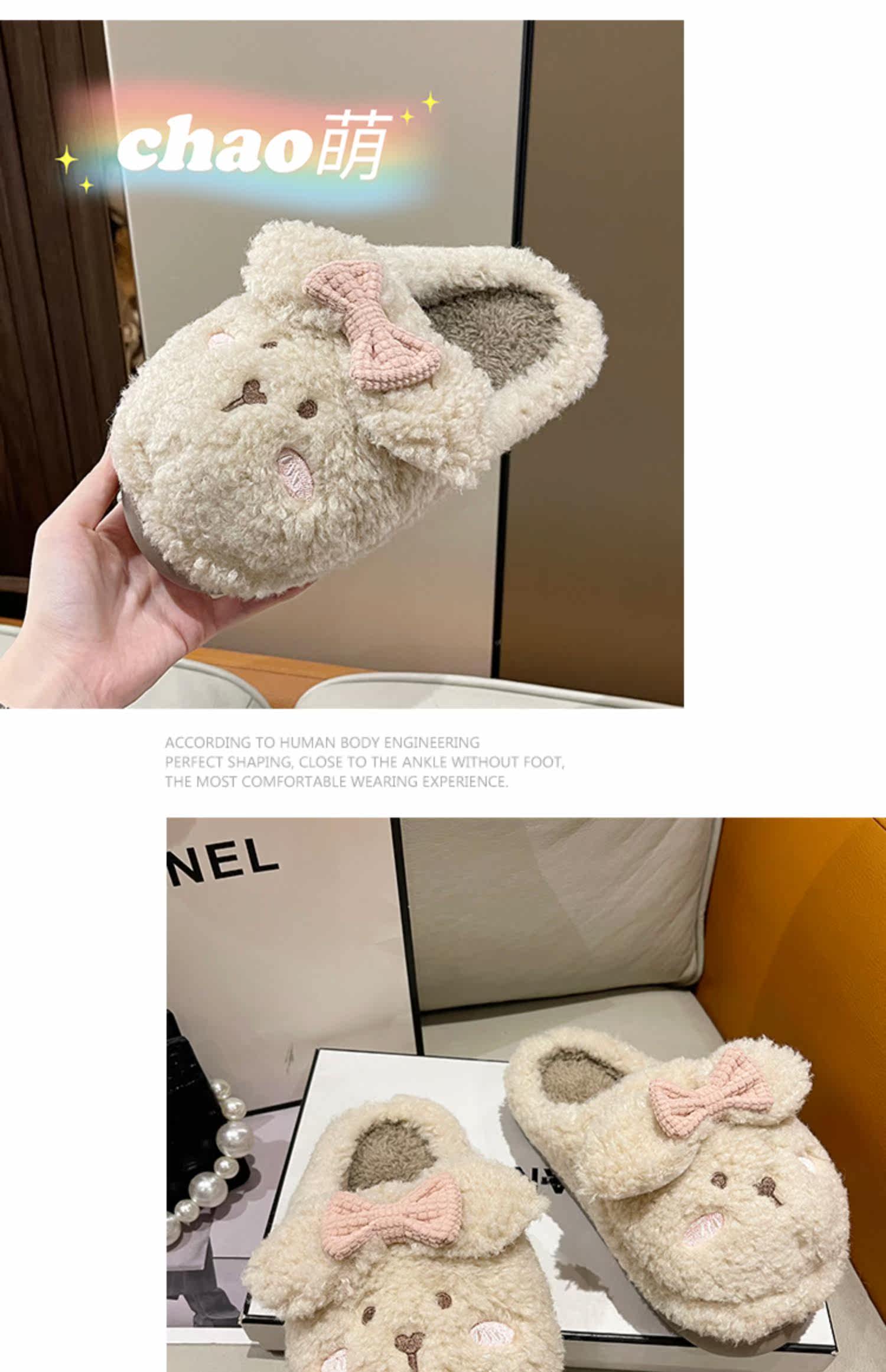 Тапочки, флисовая удерживающая тепло нескользящая демисезонная обувь с бантиком