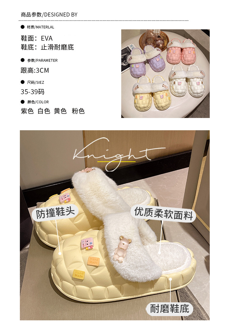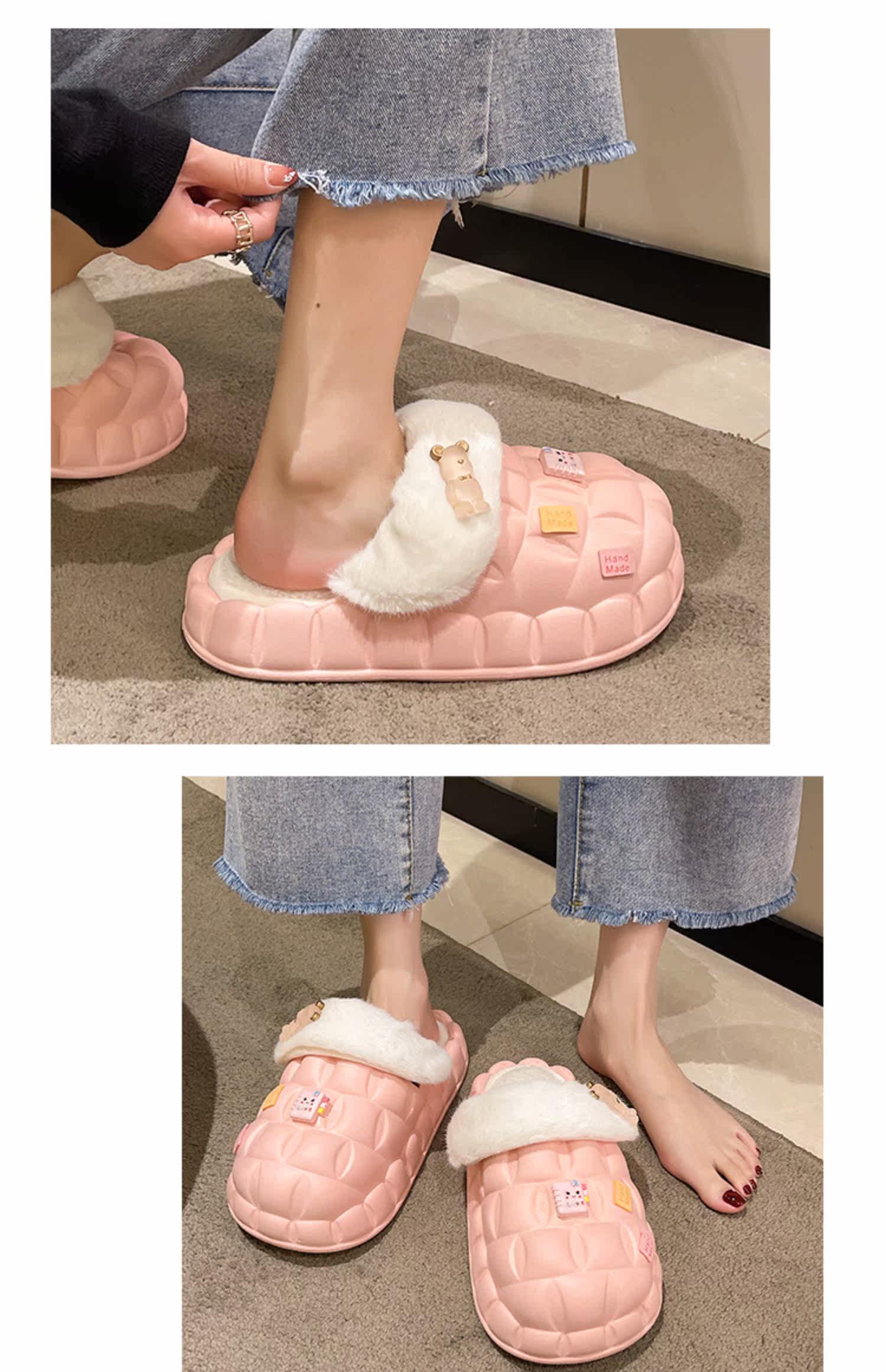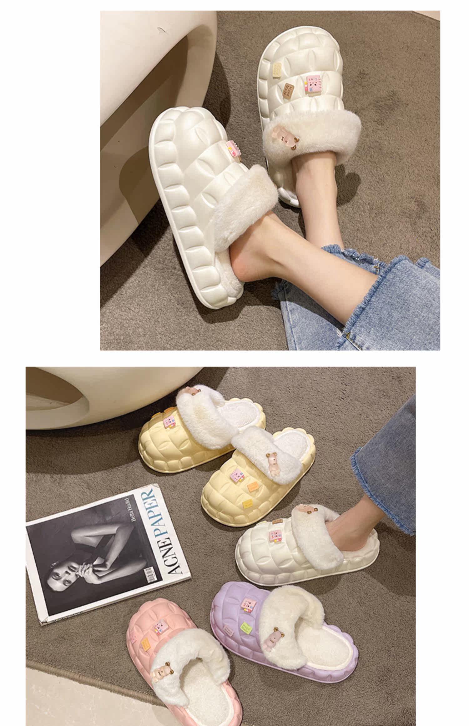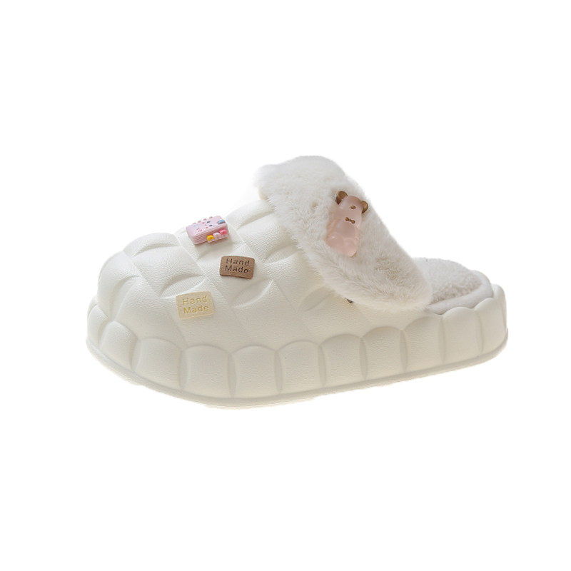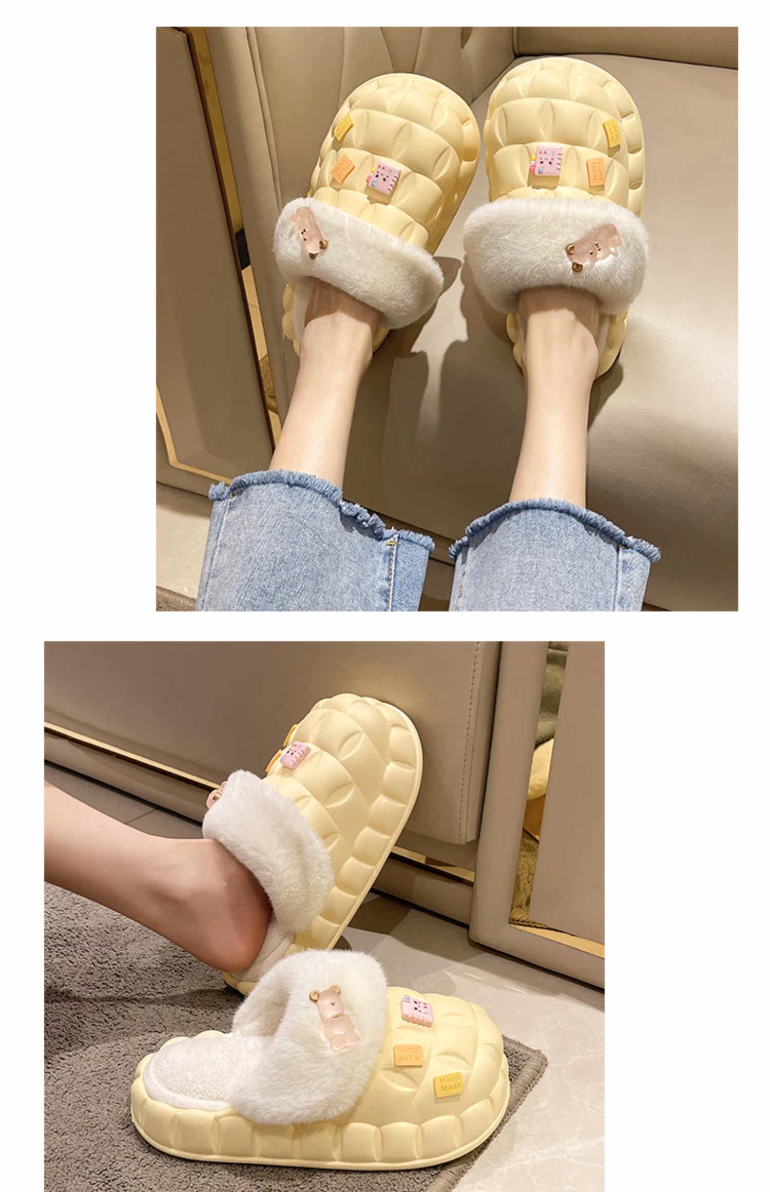Тапочки, высокая флисовая удерживающая тепло нескользящая демисезонная обувь на платформе