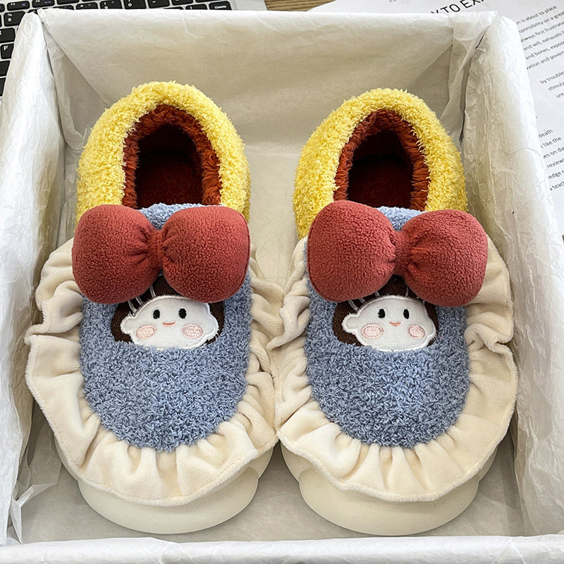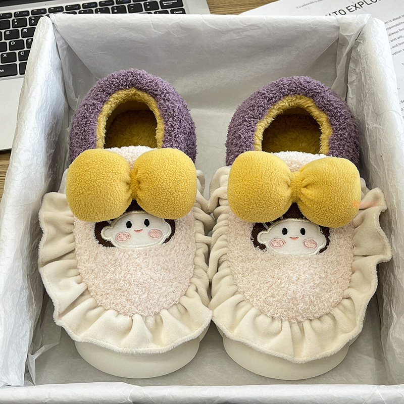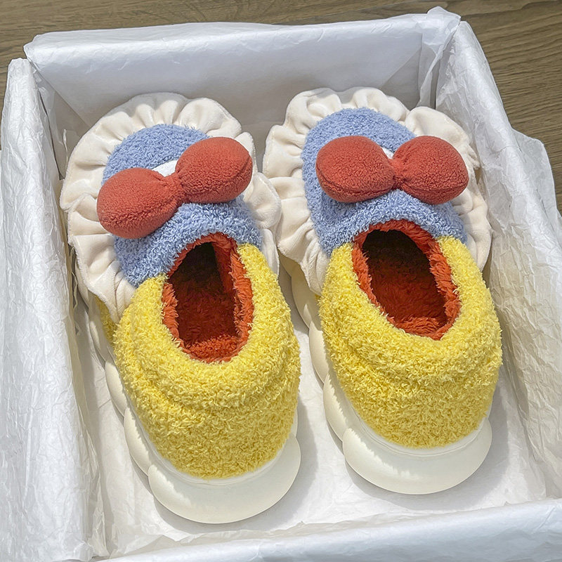 Тапочки, флисовая удерживающая тепло нескользящая мультяшная демисезонная обувь на платформе