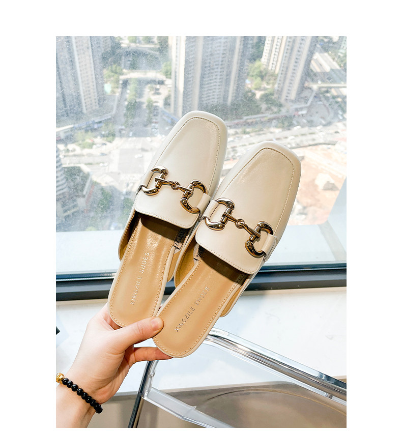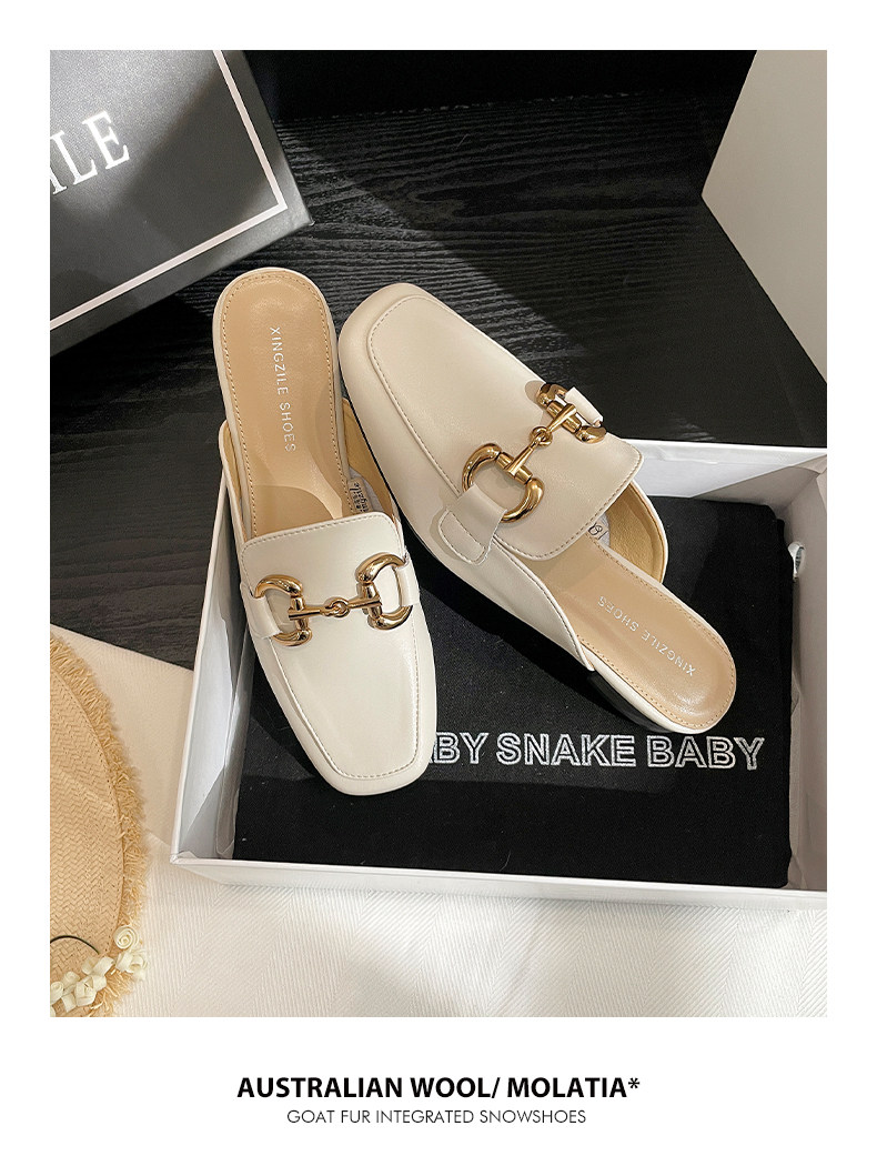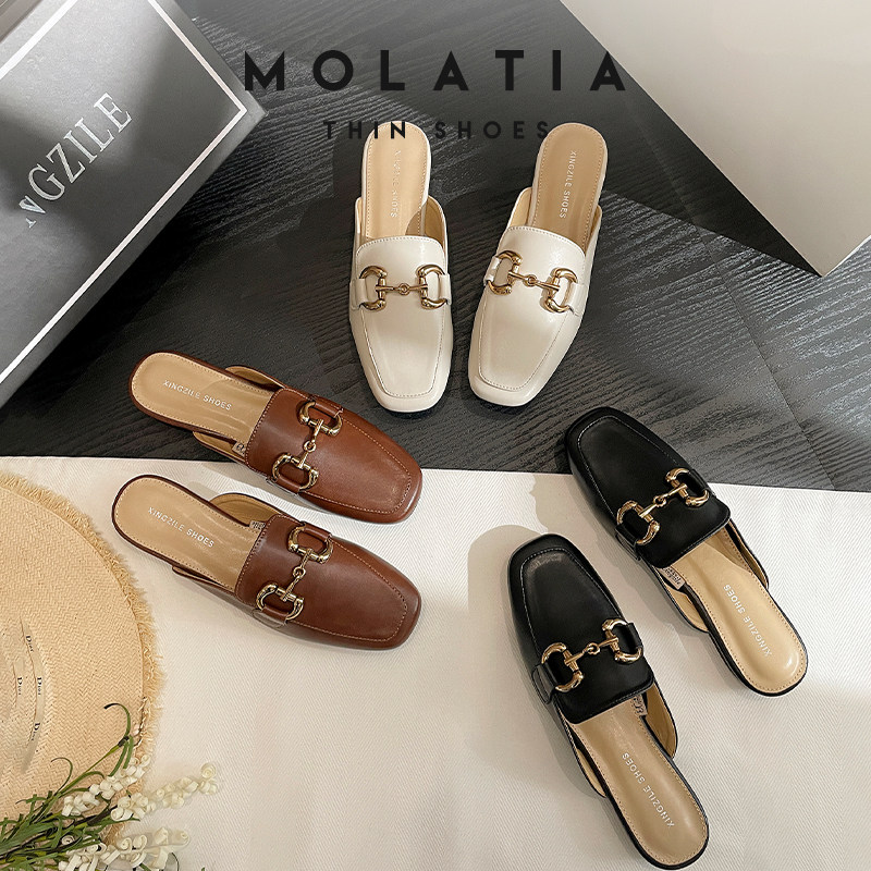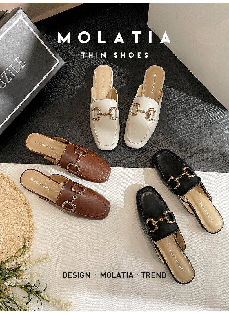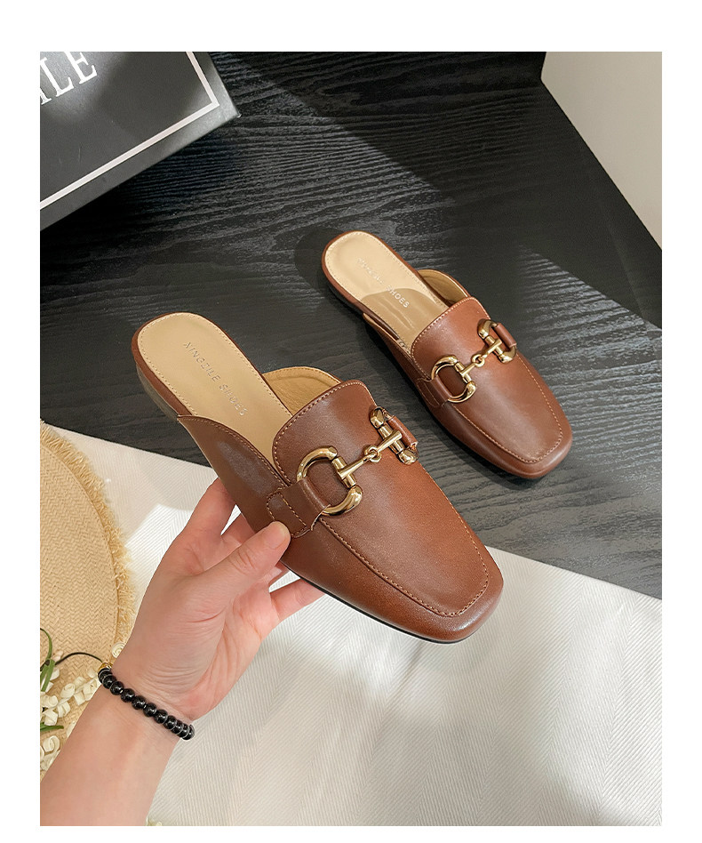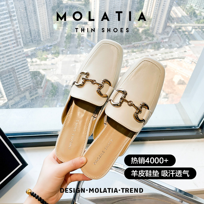 Полутапочки из натуральной кожи с носком для женской верхней одежды, новинка 2025 года, весенне-летние туфли на плоской подошве, туфли-мулы, ленивые полутапочки на одну ногу