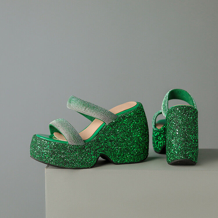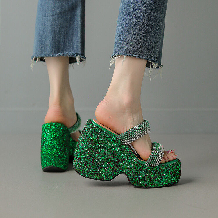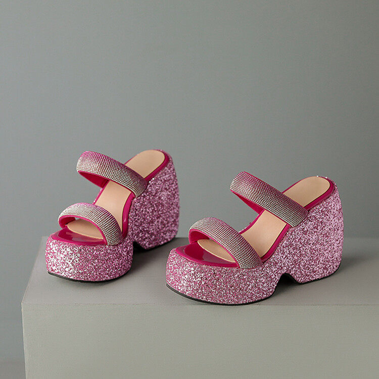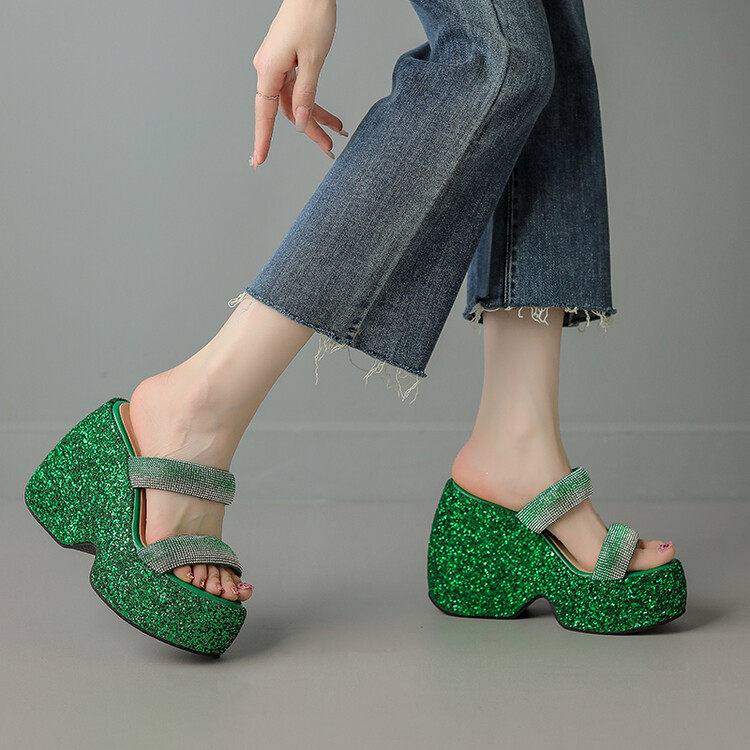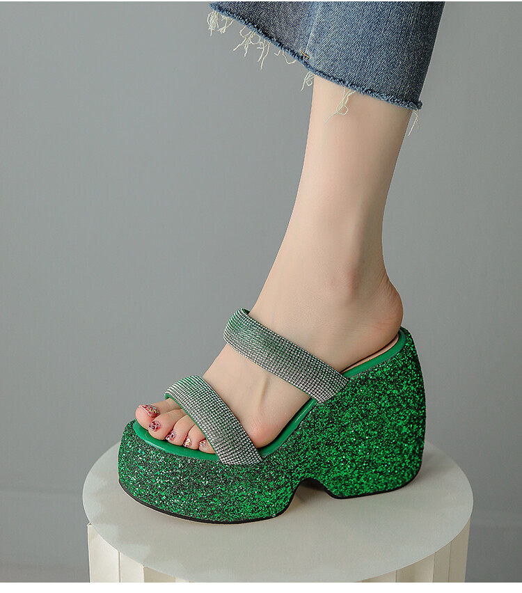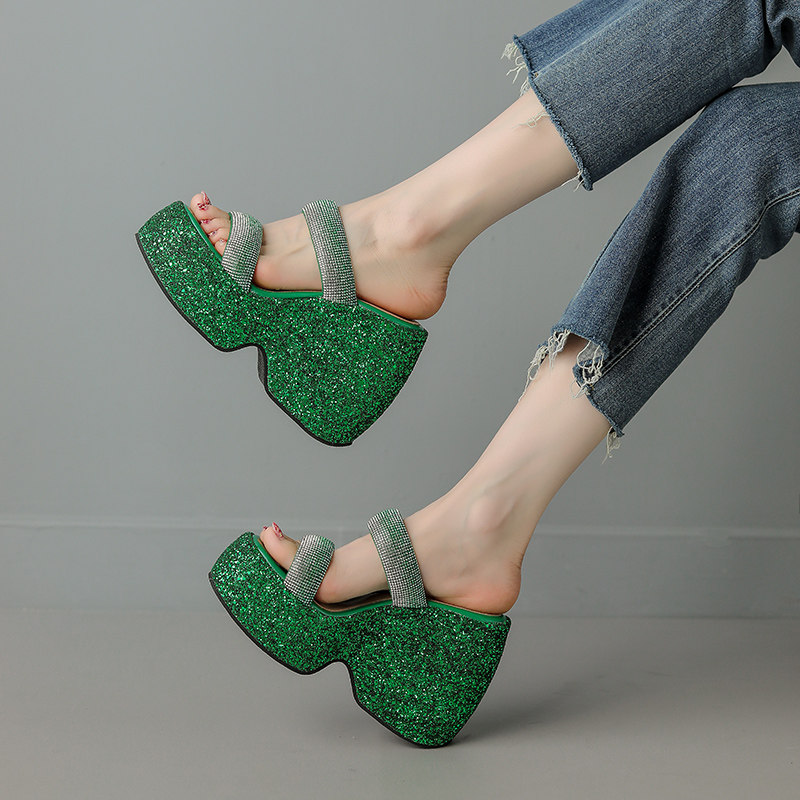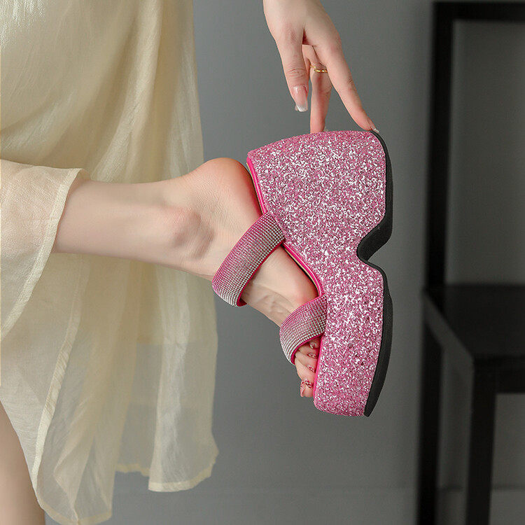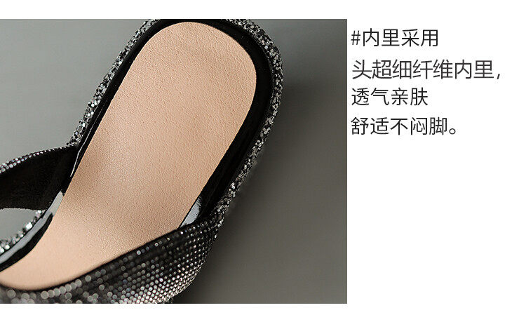 Женские шлепанцы на танкетке 10 см, летние сексуальные водонепроницаемые босоножки на платформе со стразами и бисквитом, с квадратной головкой и рыбьим ртом, для верхней одежды, на высоких каблуках на толстой подошве