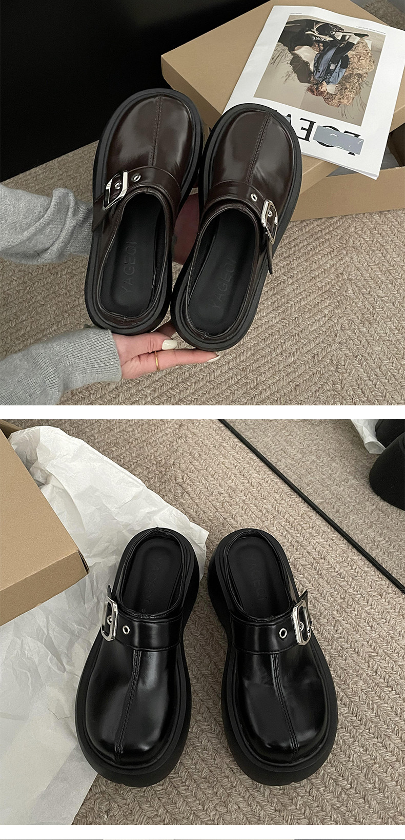 南在南方 Черные высокие тапочки на платформе, обувь, нескользящие слайдеры