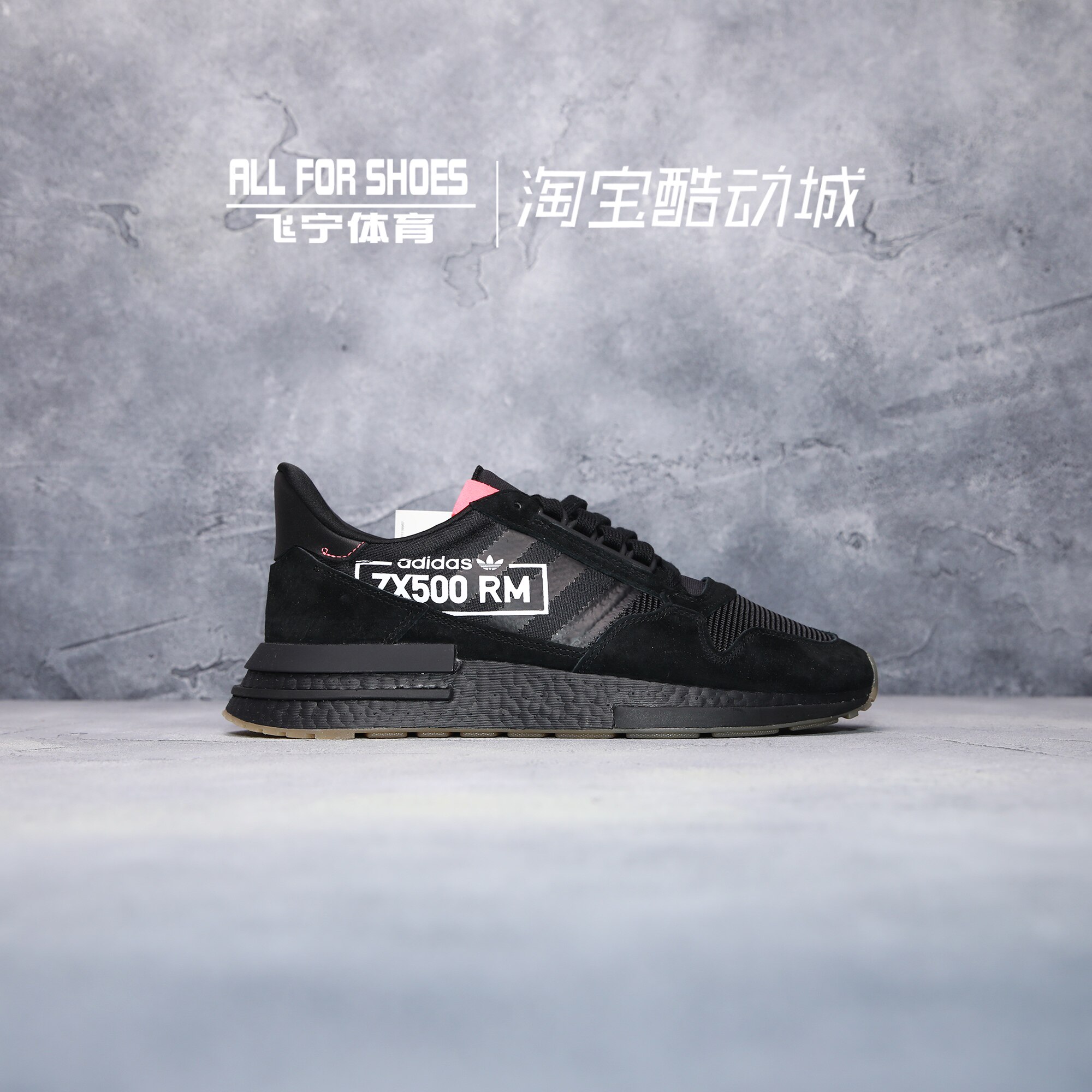 Женские черные и розовые амортизирующие повседневные кроссовки ADIDAS ZX500 BOOST для бега BB7443