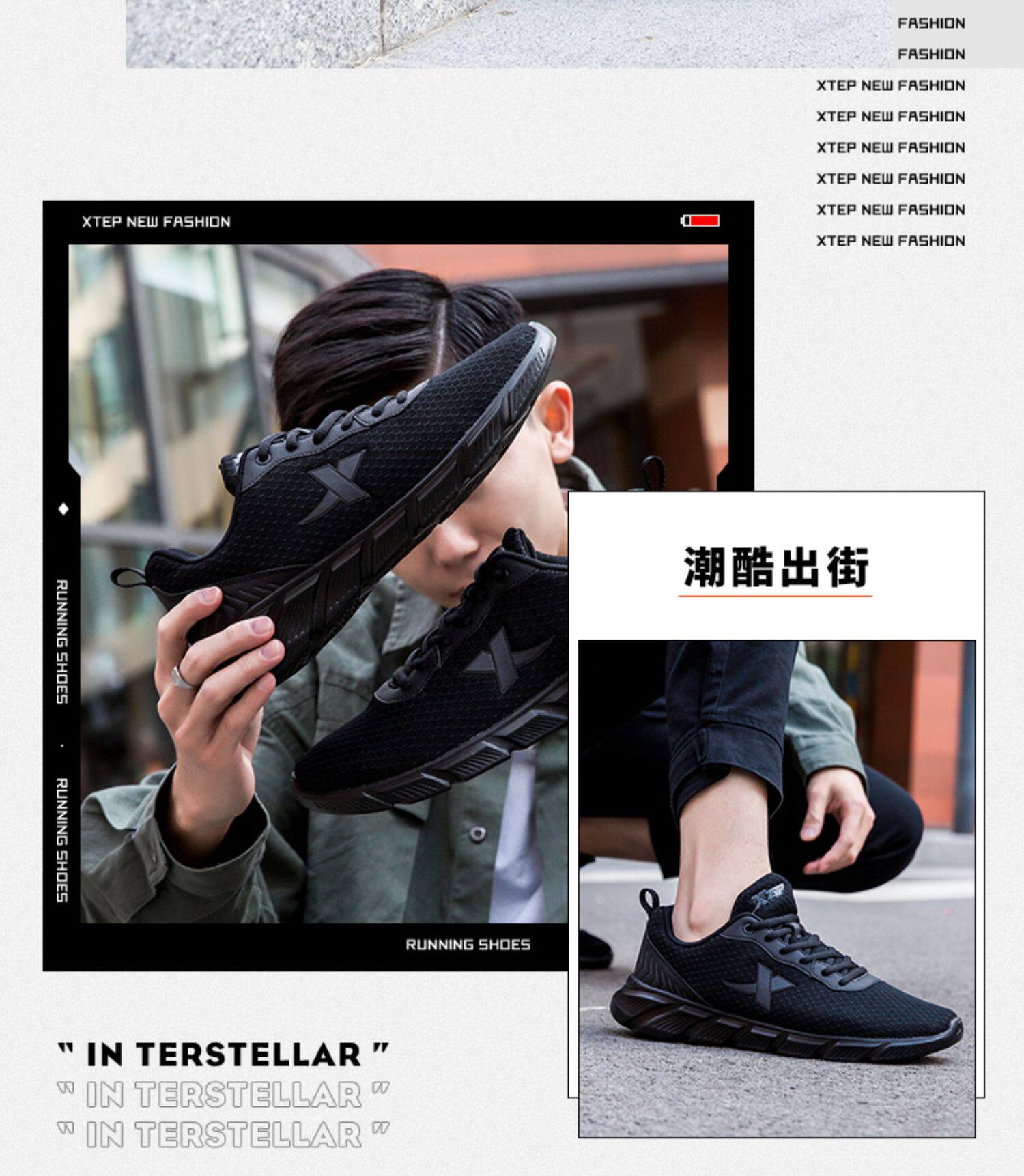Xtep, демисезонная спортивная обувь, черная зимняя повседневная обувь